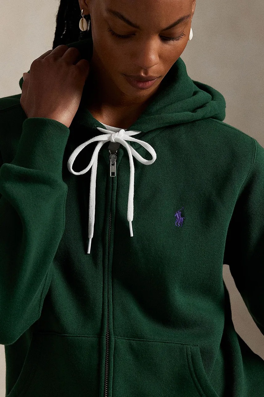Polo Ralph Lauren bluza damska kolor zielony z kapturem gładka 211971699