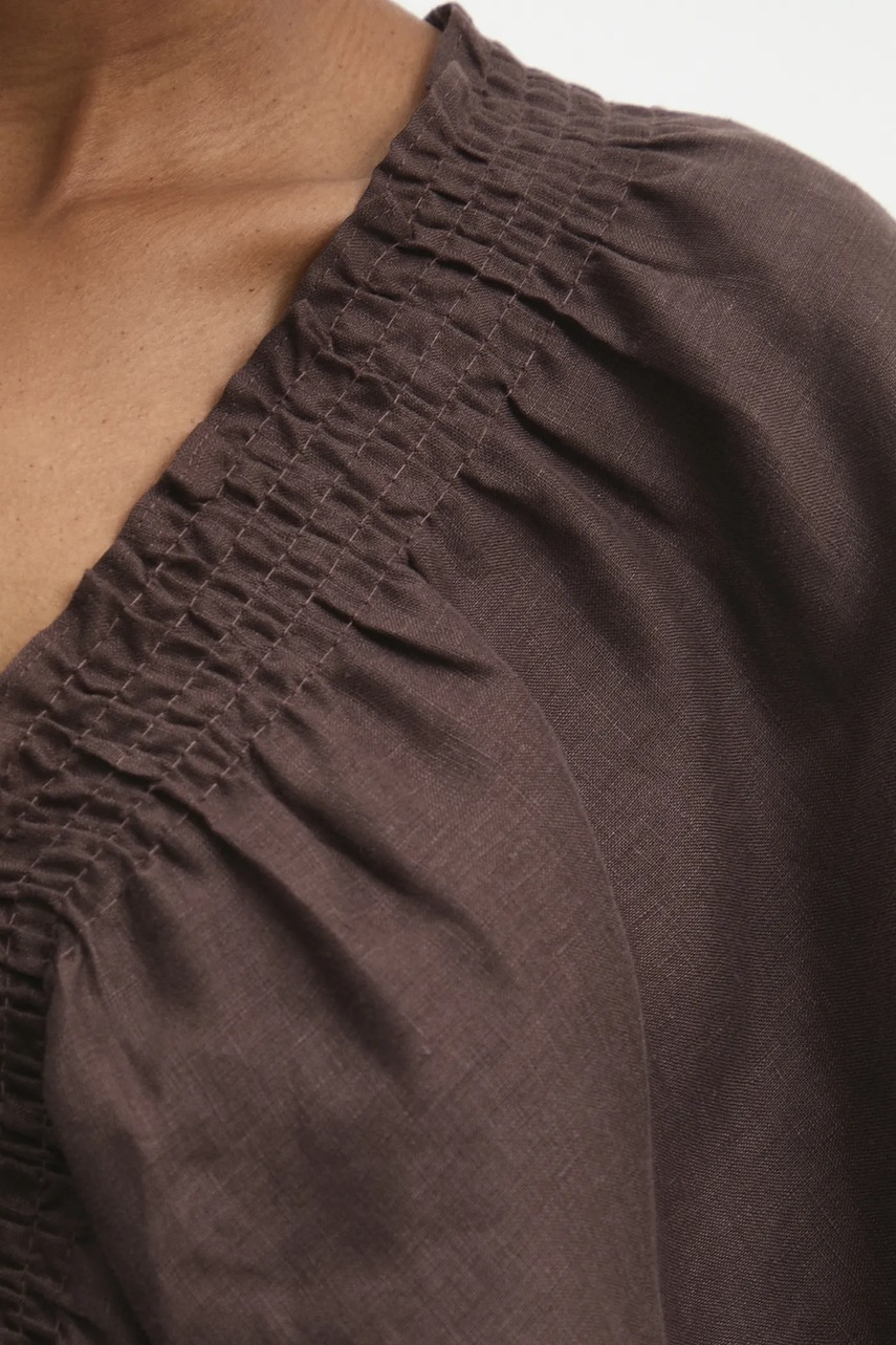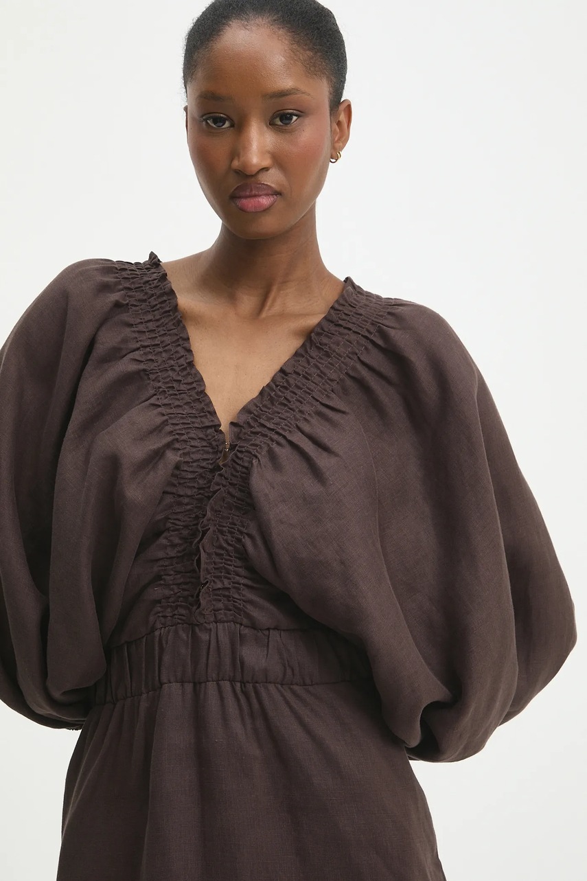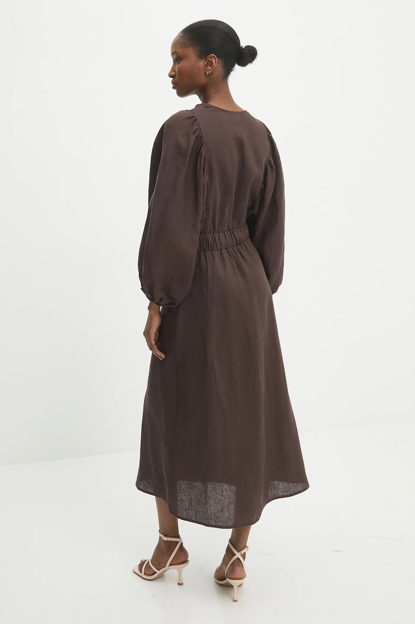 Answear.LAB sukienka lniana kolor brązowy midi rozkloszowana