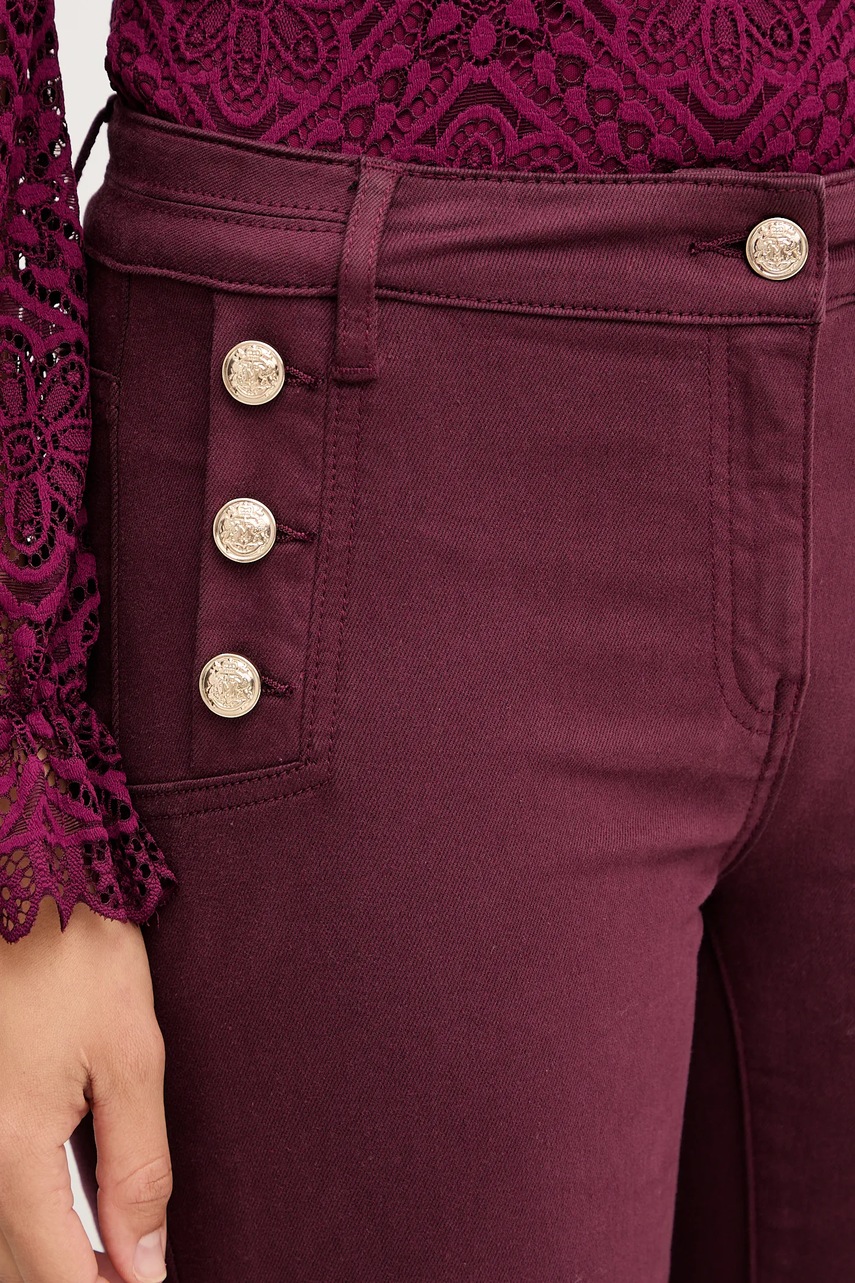 Morgan spodnie damskie kolor bordowy dzwony medium waist PLUMI