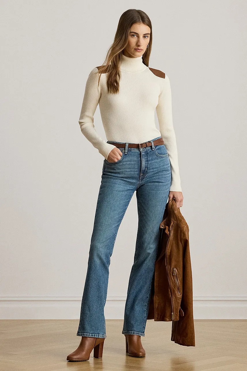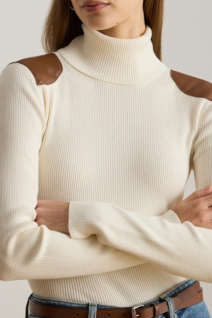 Lauren Ralph Lauren sweter damski kolor beżowy lekki z półgolfem 200951386