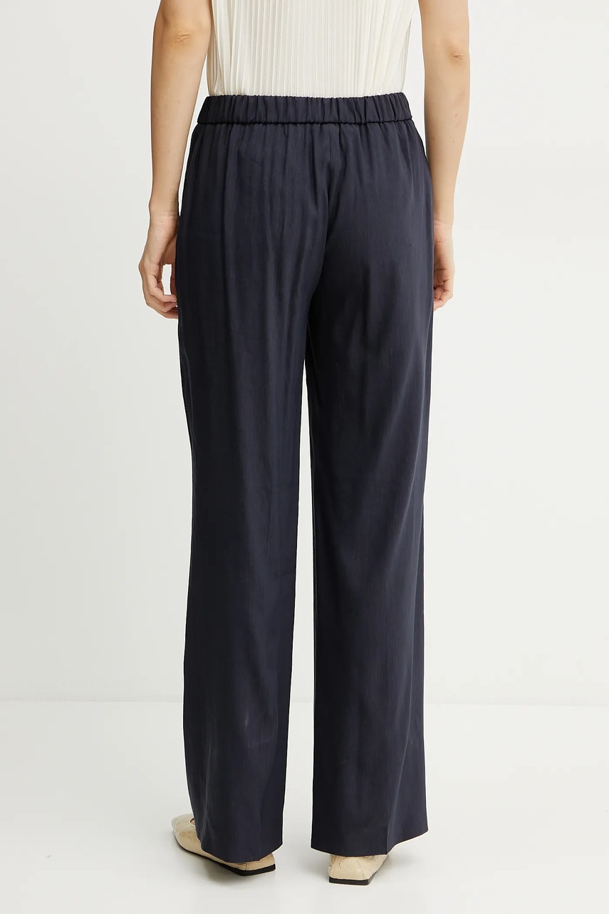 BOSS spodnie lniane damskie kolor granatowy proste high waist 50540608