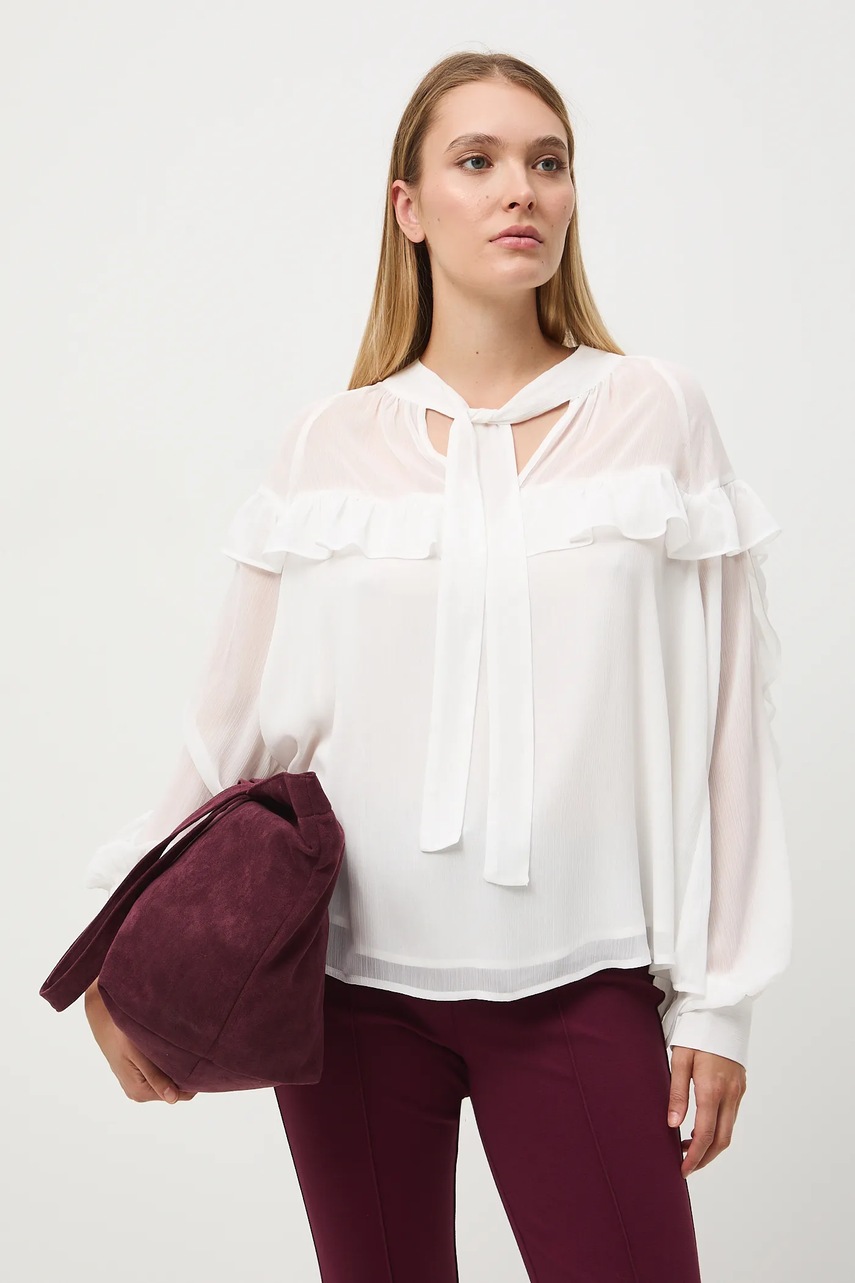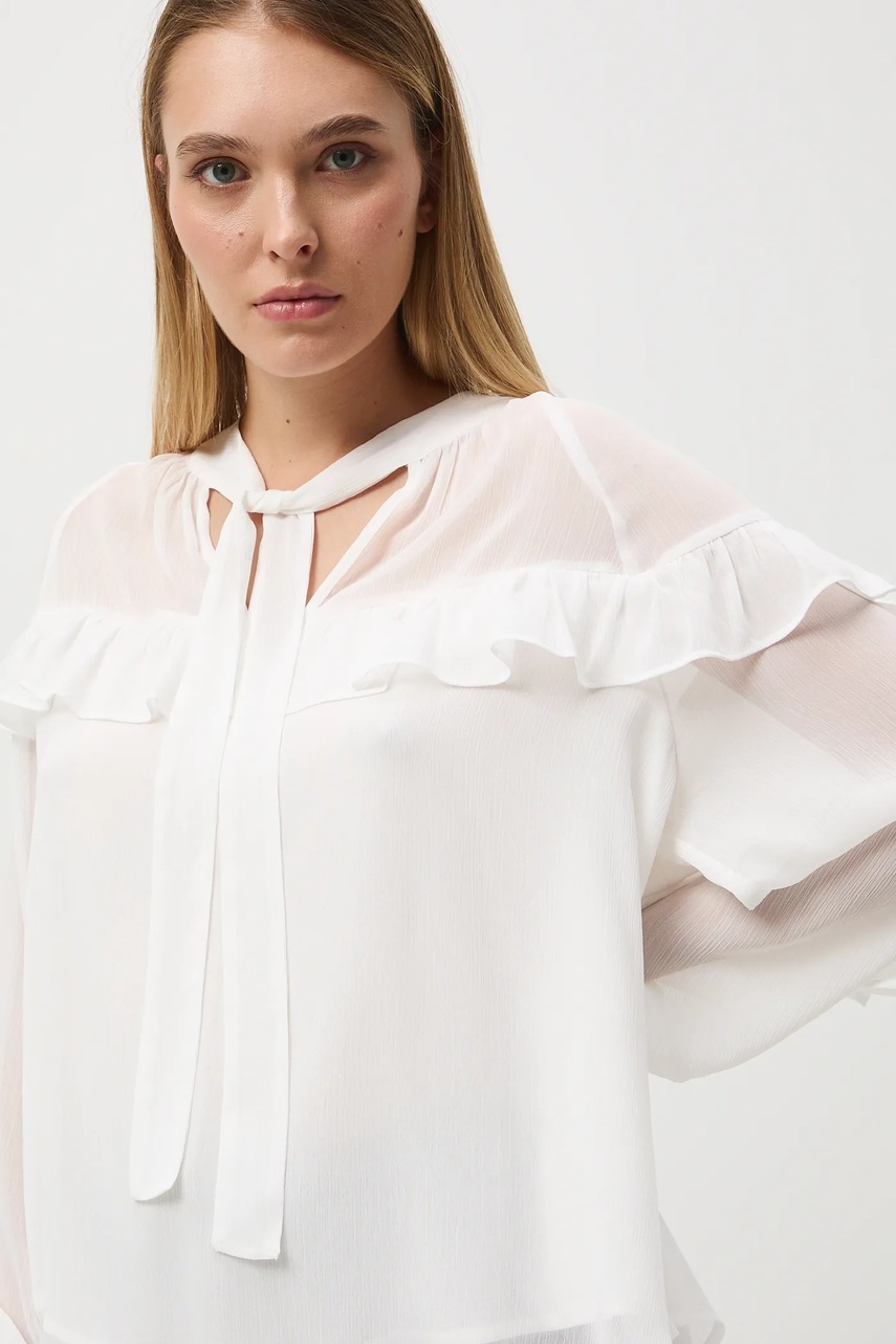 - Model z ozdobnymi falbanami.