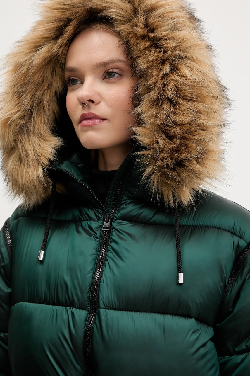 - Model z dopinanym, sztucznym futerkiem.