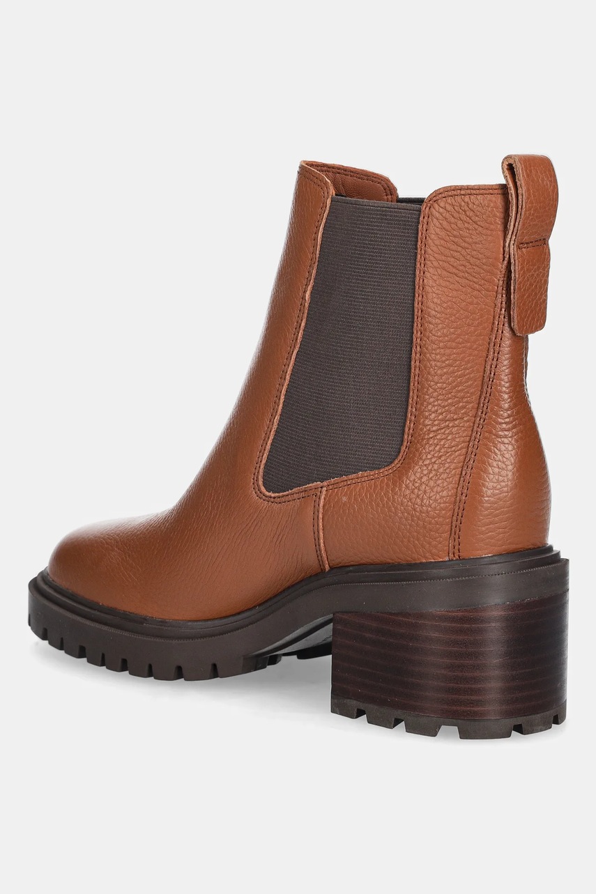 Tommy Hilfiger sztyblety skórzane TH LEATHER CHELSEA CLEATED HEEL damskie kolor brązowy na słupku FW0FW08774