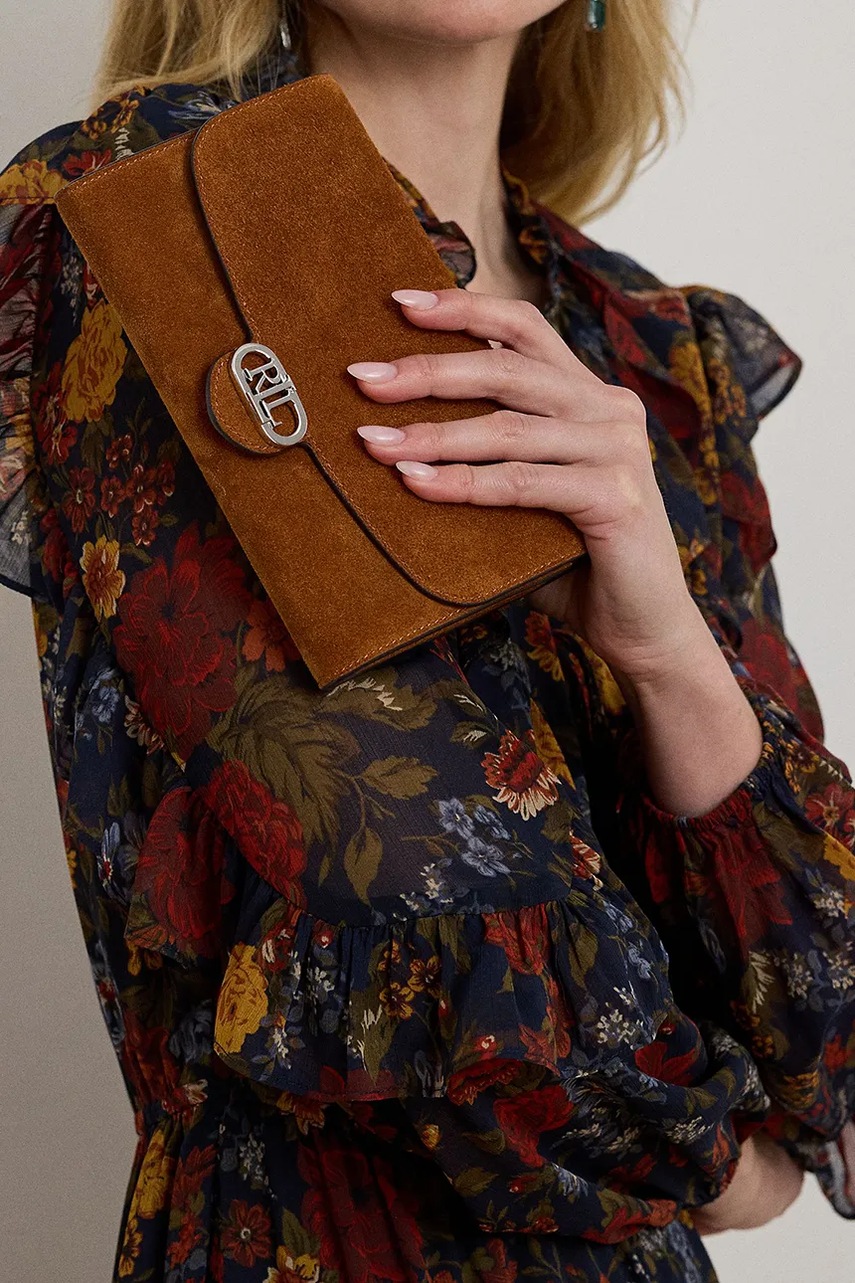 Lauren Ralph Lauren kopertówka zamszowa kolor brązowy 432980761