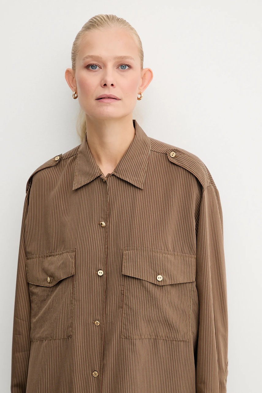 Sessun koszula damska kolor brązowy relaxed z kołnierzykiem klasycznym 25110019