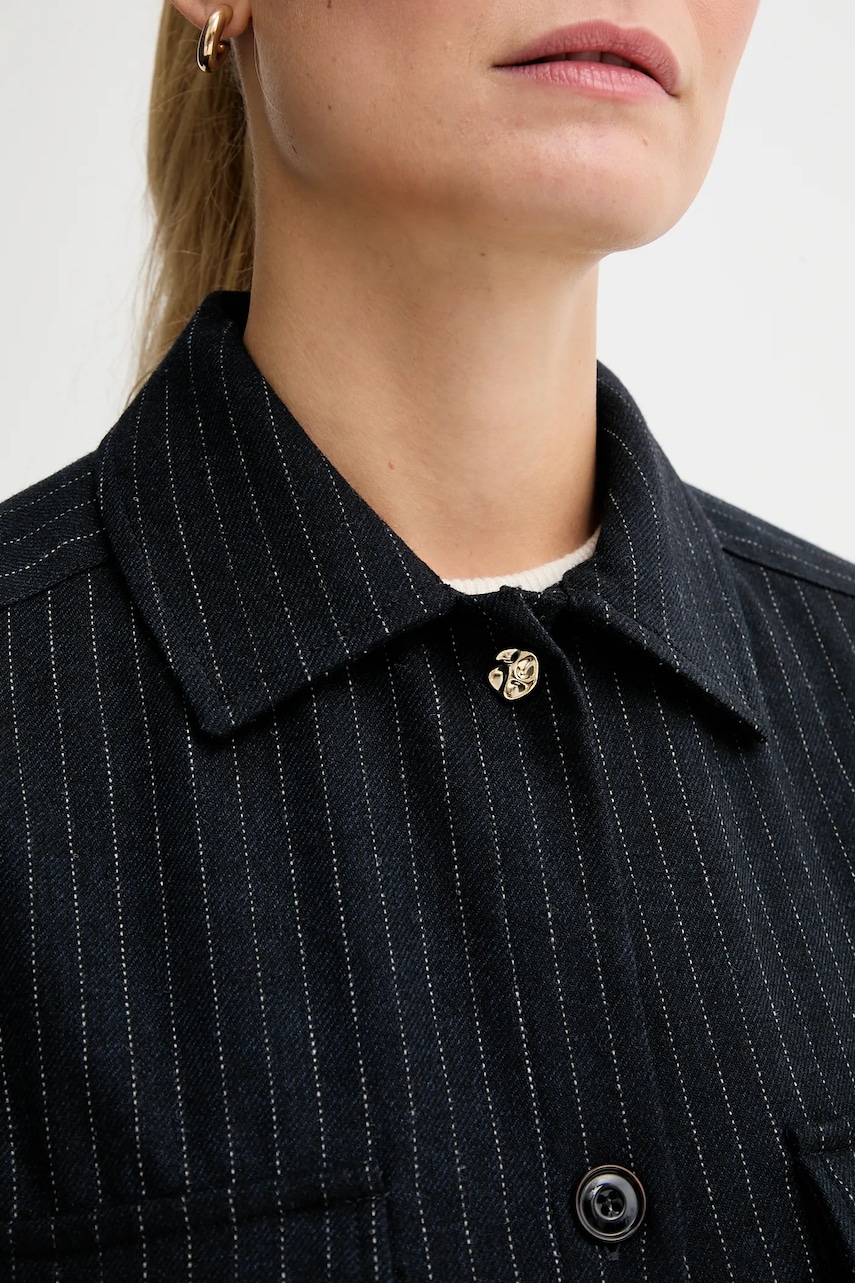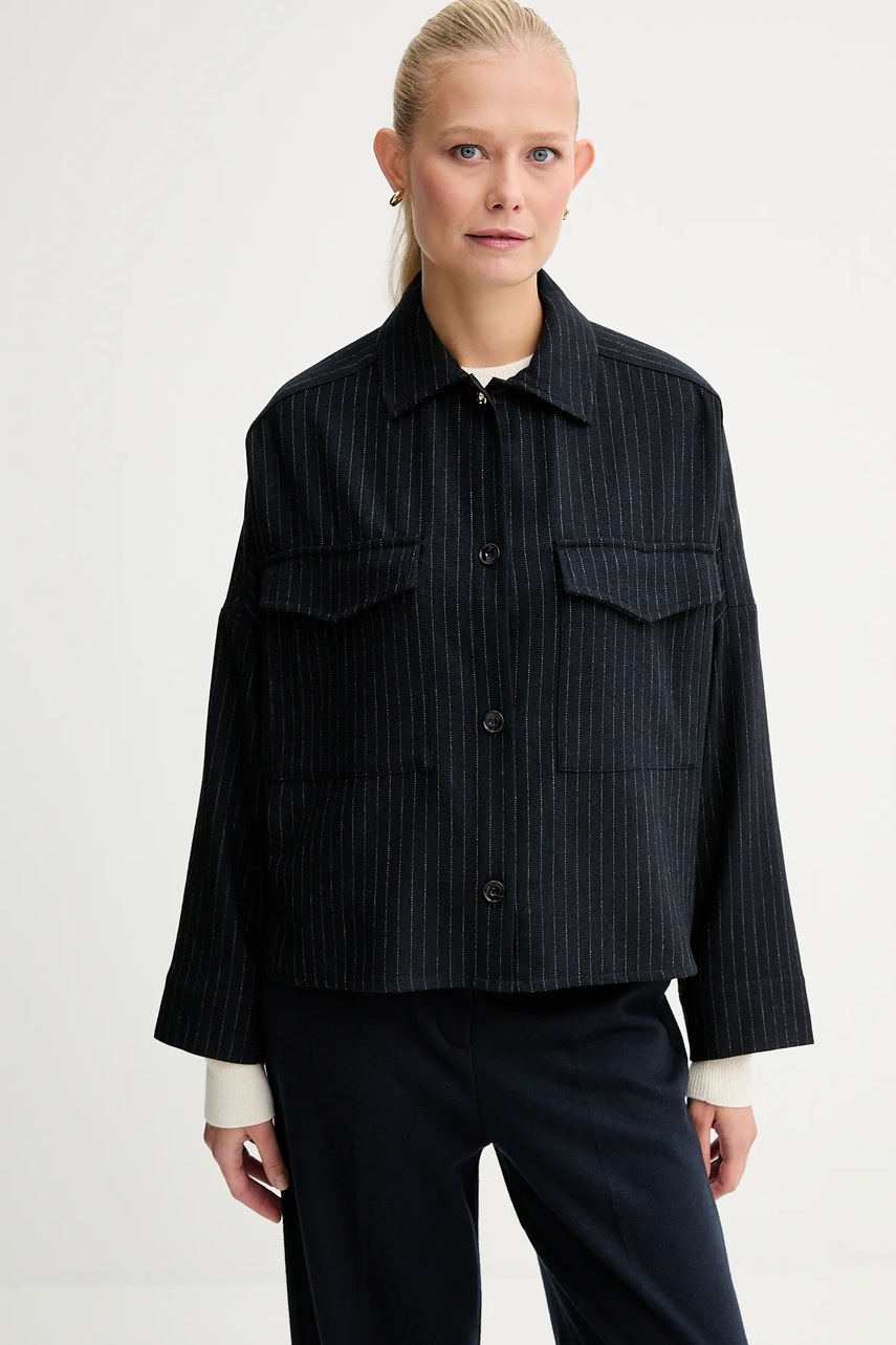 Sessun koszula z dodatkiem wełny damska kolor granatowy relaxed z kołnierzykiem klasycznym 25110028