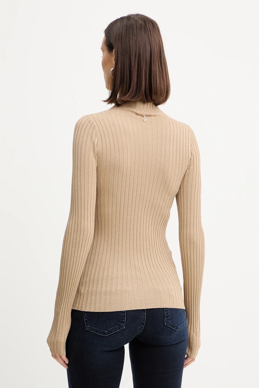 Liu Jo sweter damski kolor beżowy lekki z półgolfem MF5389 MS46J