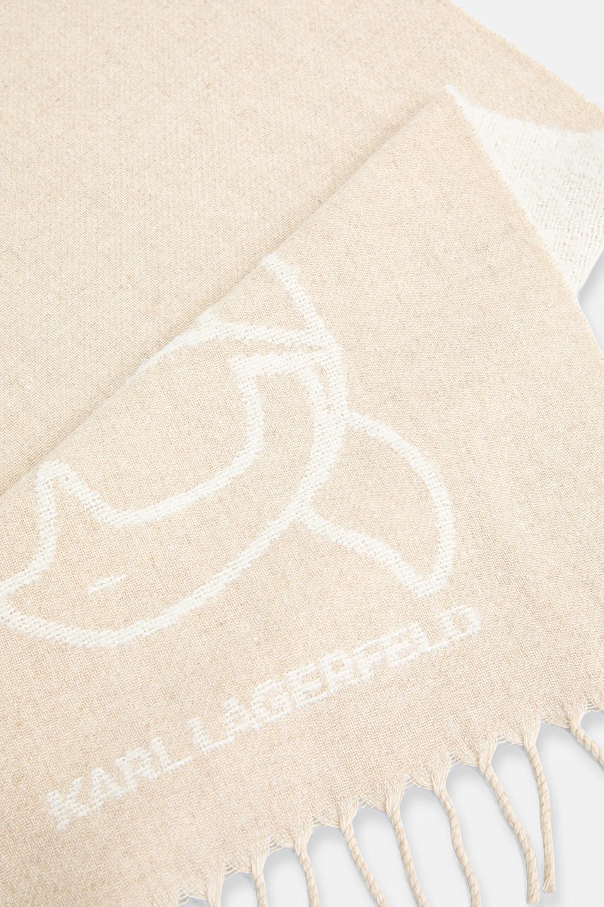 Karl Lagerfeld szalik z dodatkiem wełny IKON damski kolor beżowy wzorzysty A4W33051