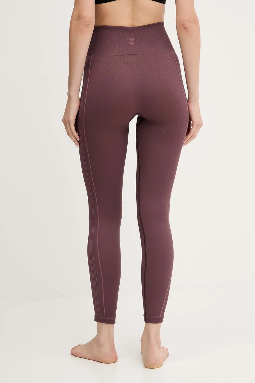 Hummel legginsy do jogi damskie kolor bordowy wzorzyste 230429
