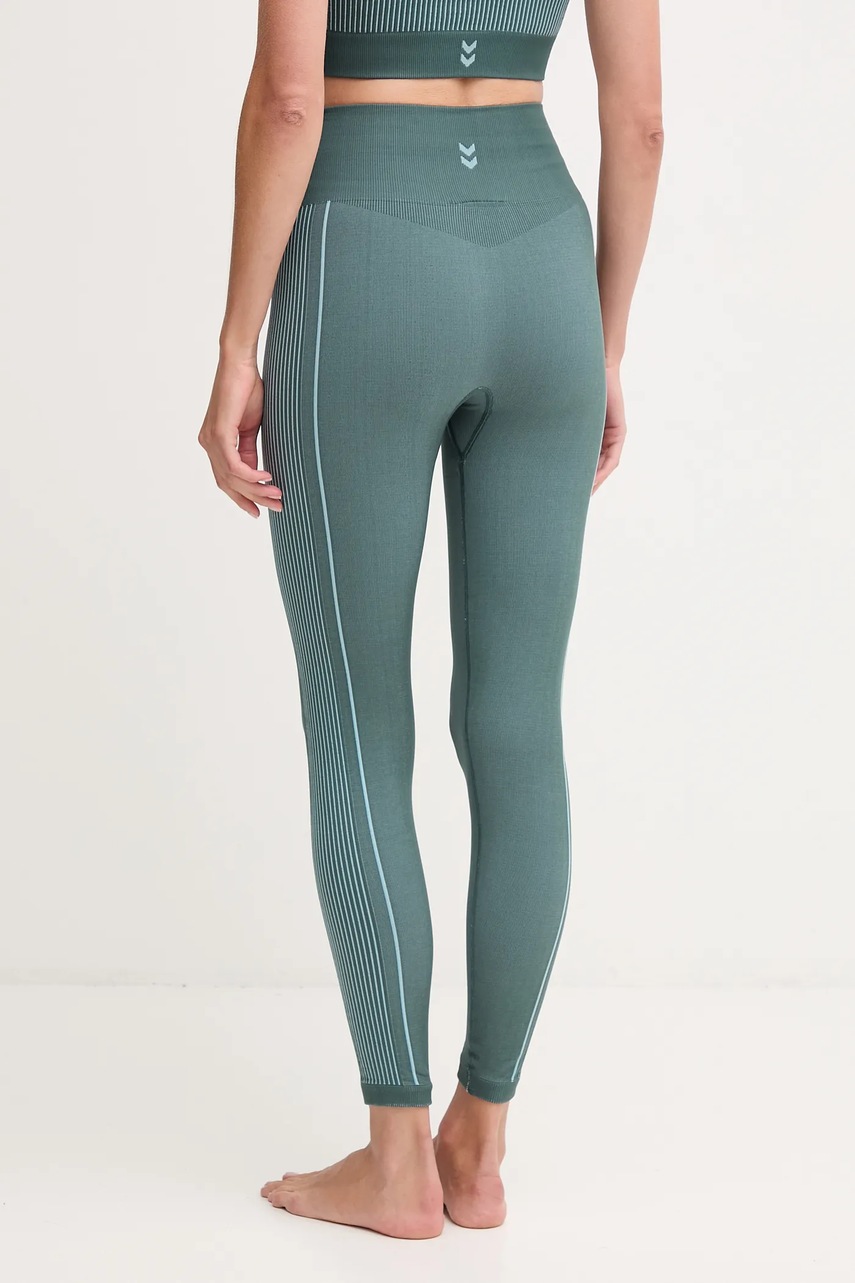 Hummel legginsy do jogi damskie kolor zielony wzorzyste 230429