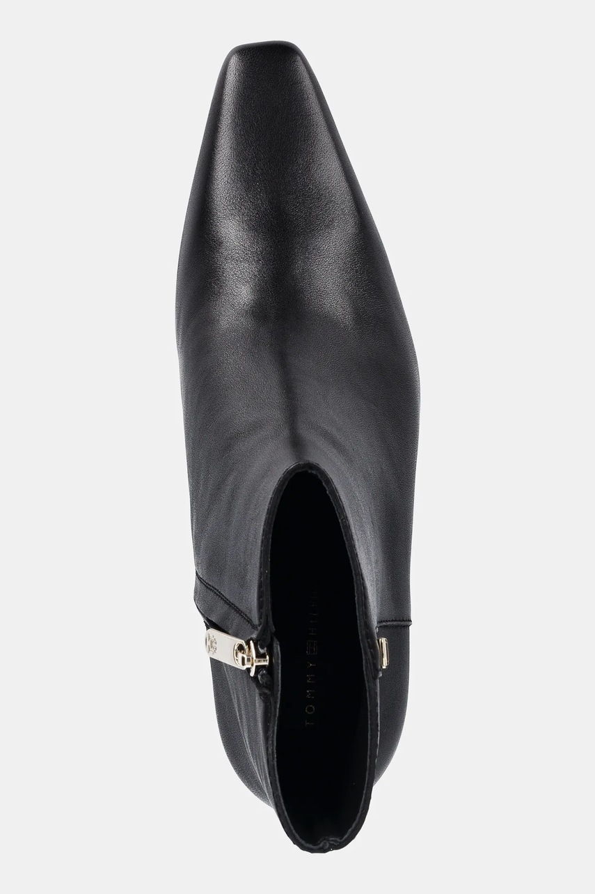 Tommy Hilfiger botki skórzane SQUARE TOE KITTEN BOOTIE damskie kolor czarny na słupku FW0FW08768