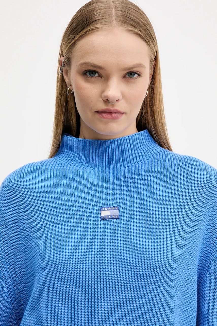 Tommy Jeans sweter bawełniany damski kolor niebieski z półgolfem DW0DW21676