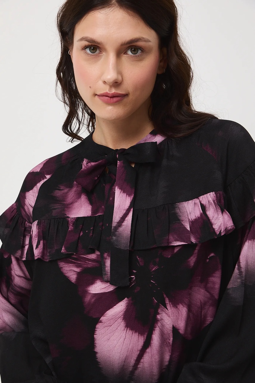 - Model z ozdobną falbaną.