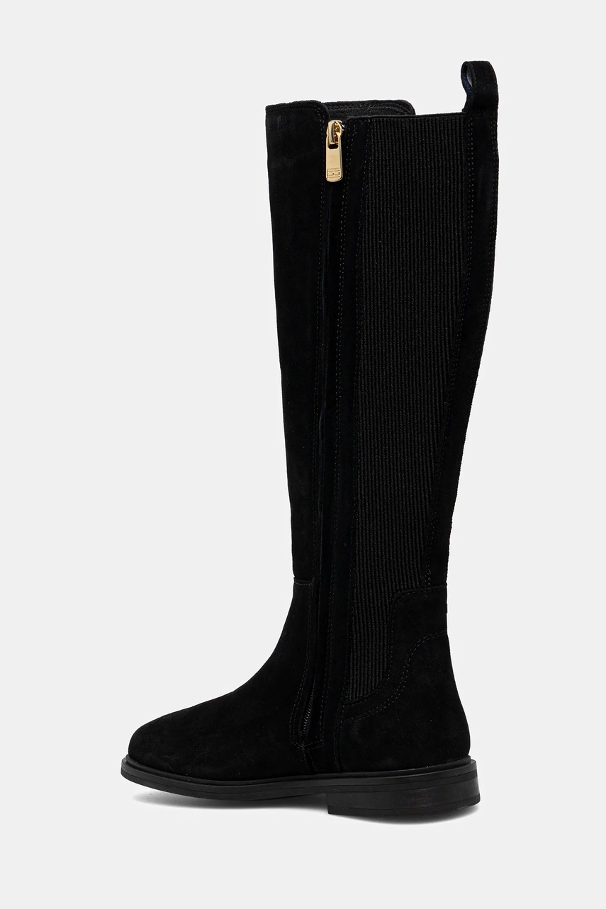 Tommy Hilfiger kozaki zamszowe FLAG SUEDE LONG BOOT damskie kolor czarny na płaskim obcasie FW0FW08779
