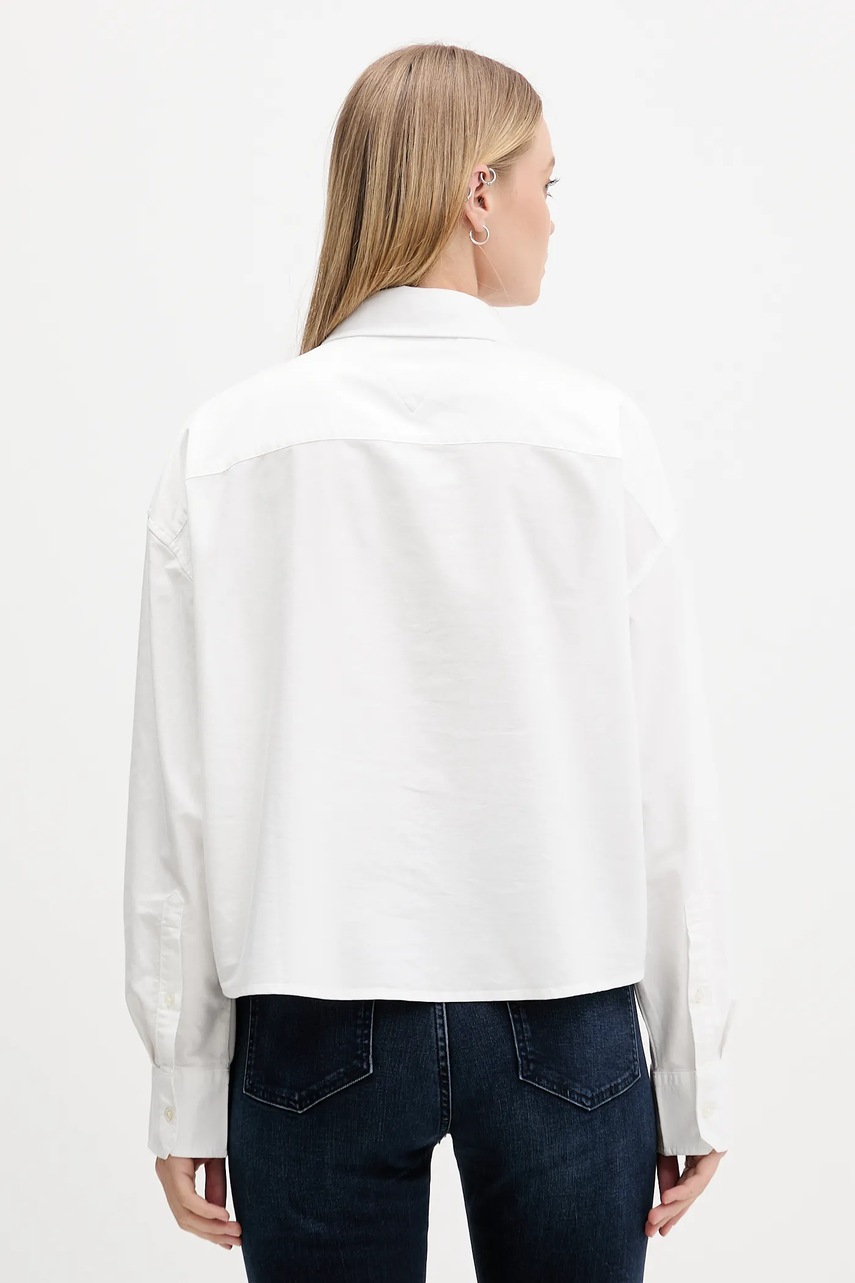 Tommy Jeans koszula bawełniana damska kolor biały relaxed z kołnierzykiem klasycznym DW0DW21455