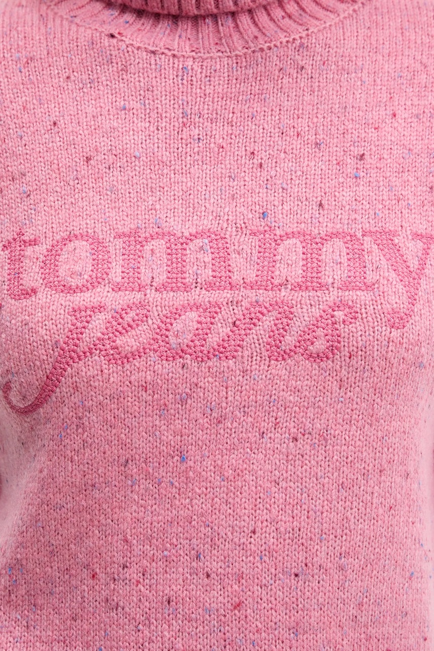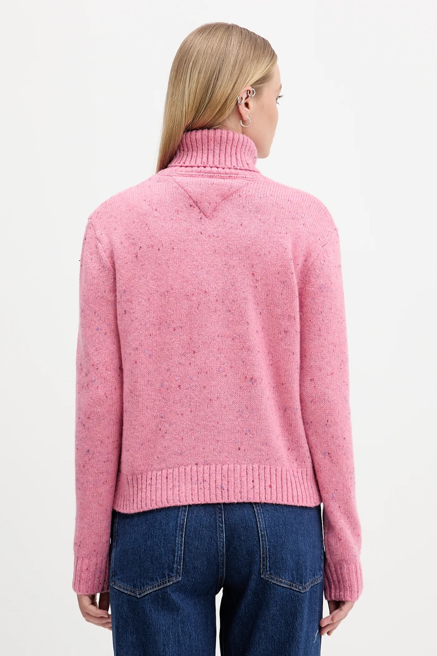 Tommy Jeans sweter z dodatkiem wełny damski kolor różowy z golfem DW0DW21687