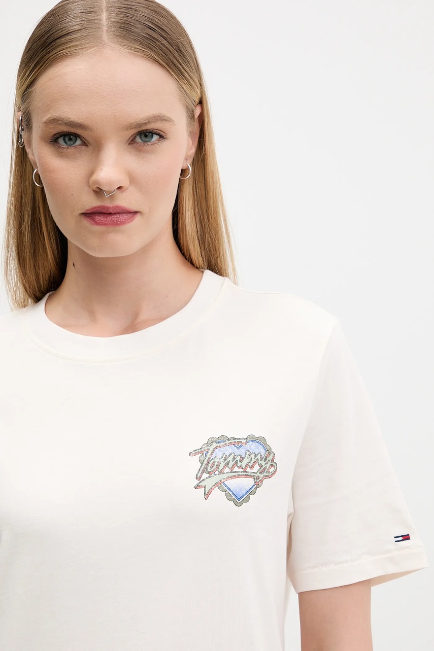 Tommy Jeans t-shirt bawełniany damski kolor beżowy DW0DW21524