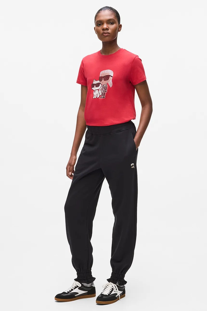 Karl Lagerfeld spodnie dresowe IKON damskie kolor czarny gładkie A4W10099