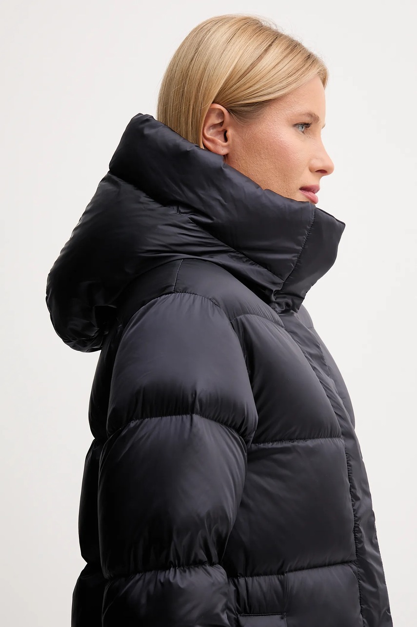 - Podwyższony kołnierz i nieodpinany kaptur gwarantują dodatkową ochronę przed chłodem.