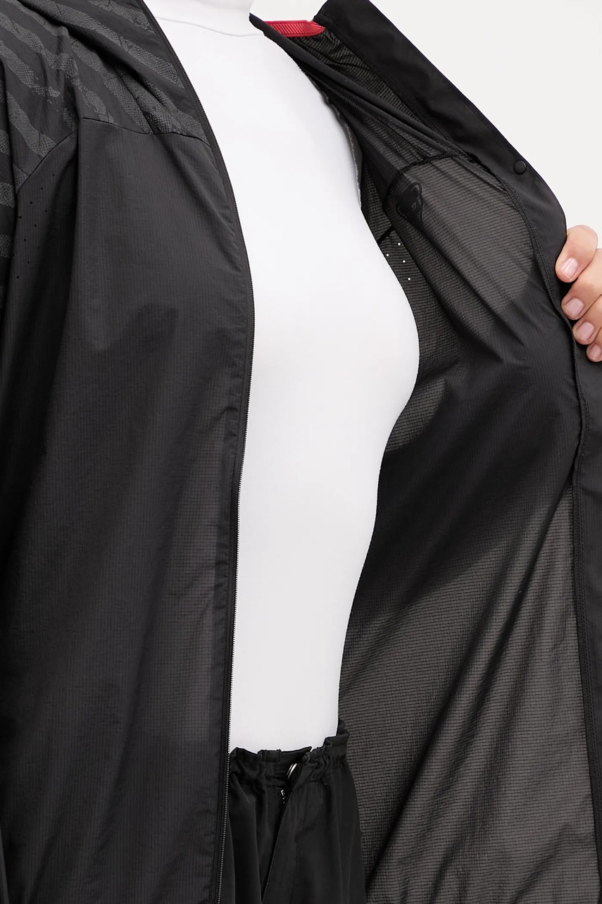 - Dopasowany, zabudowany kaptur wykończony kontrastową, elastyczną lamówką, zapewnia osłonę przed niepogodą.