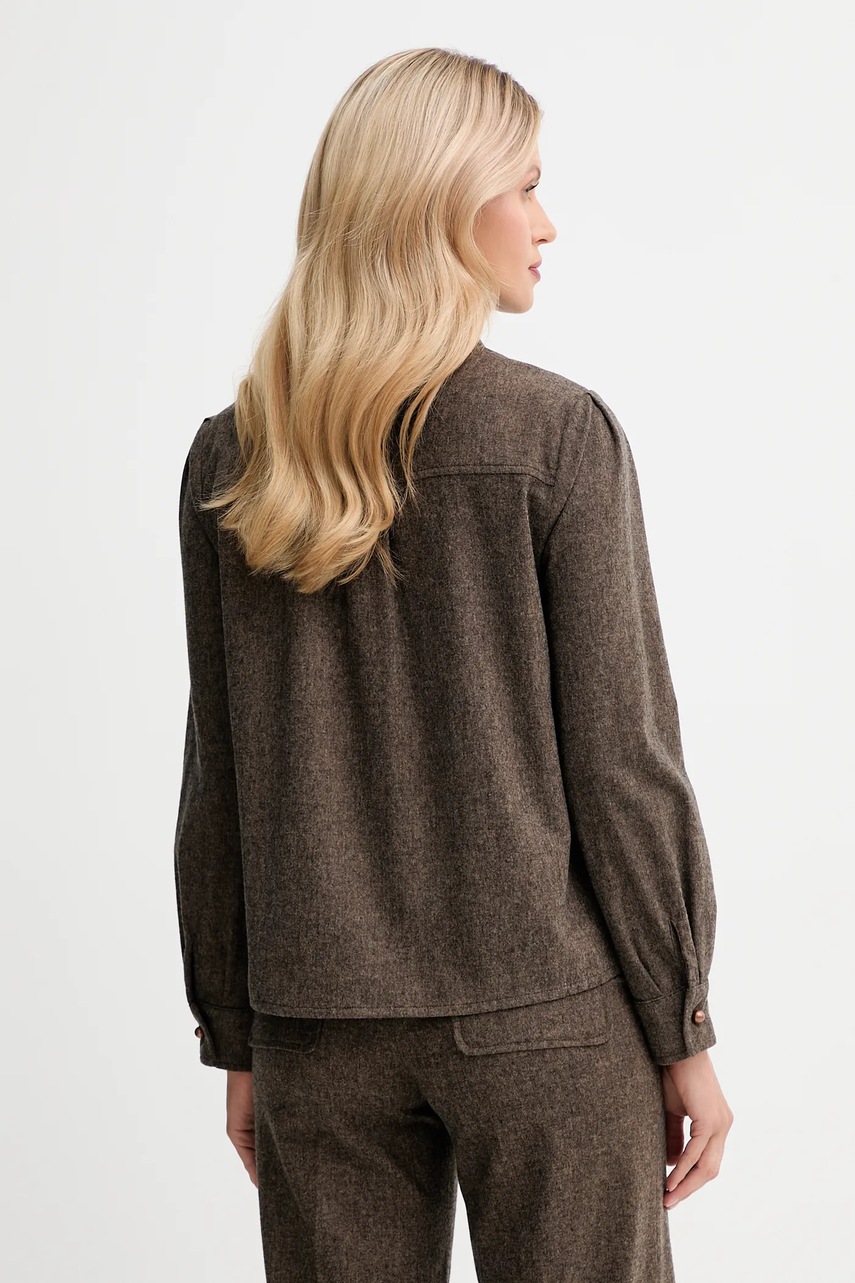 Sessun koszula z dodatkiem wełny damska kolor brązowy relaxed z kołnierzykiem klasycznym 25110009