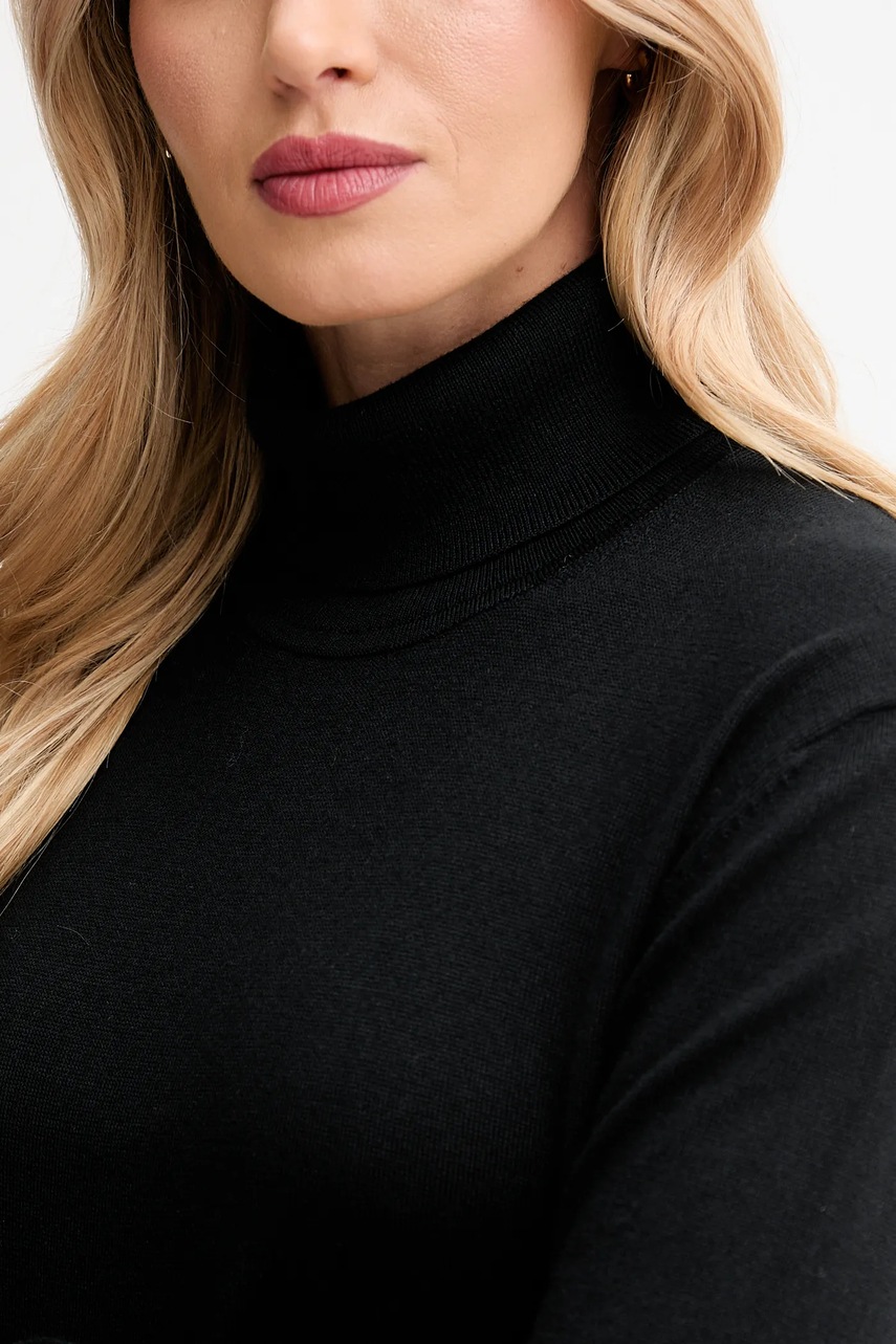 Calvin Klein sweter z dodatkiem wełny damski kolor czarny lekki z golfem LV044D371G