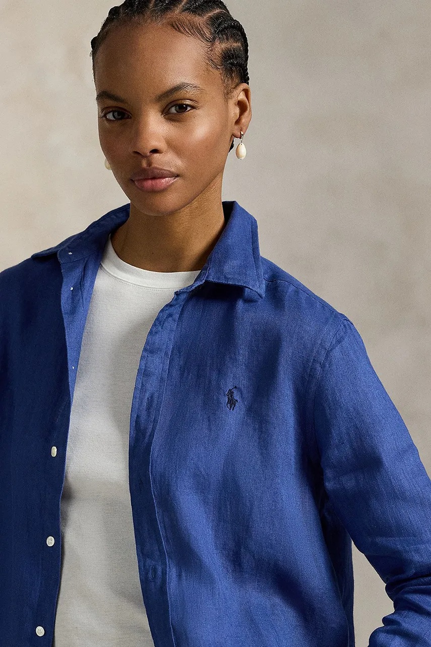 Polo Ralph Lauren koszula lniana kolor niebieski relaxed z kołnierzykiem klasycznym 211970730