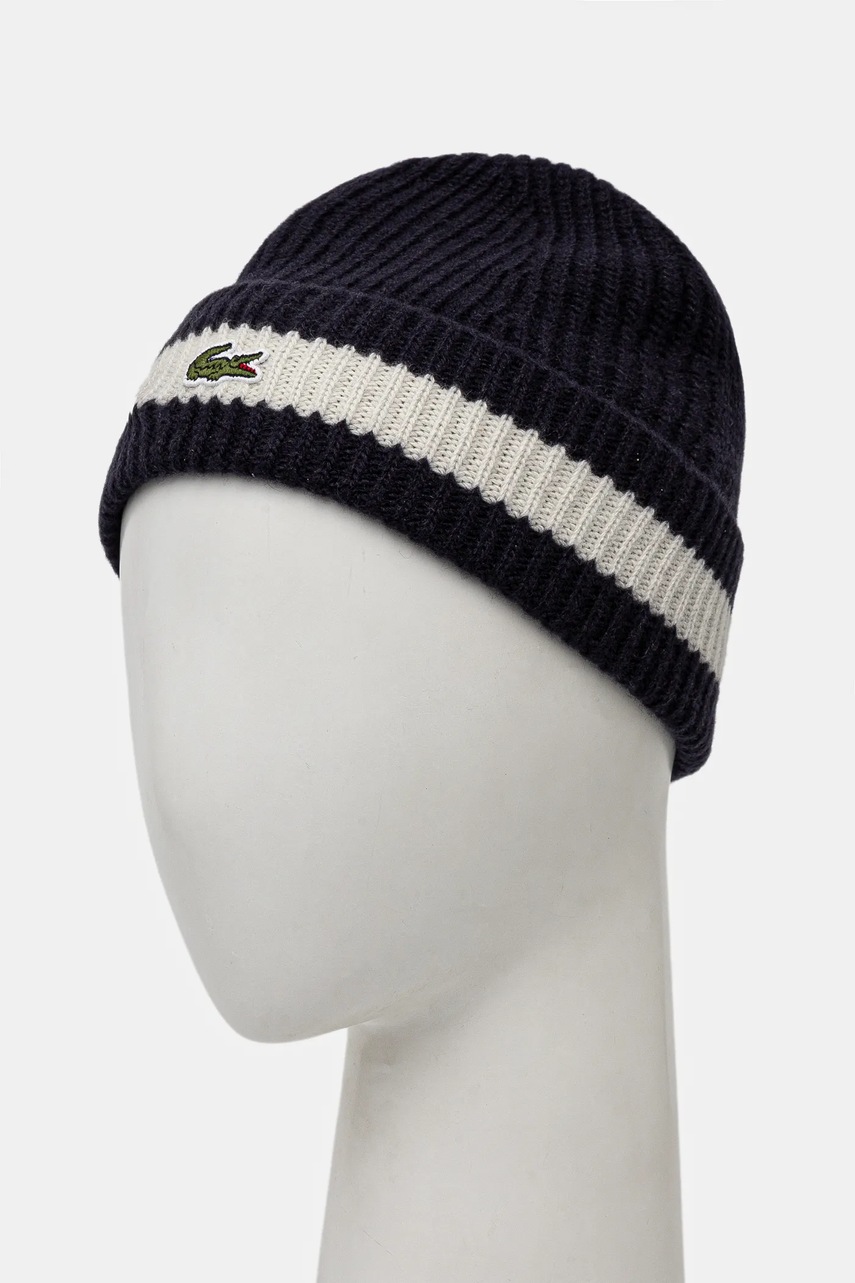 Lacoste czapka wełniana kolor granatowy z cienkiej dzianiny wełniana