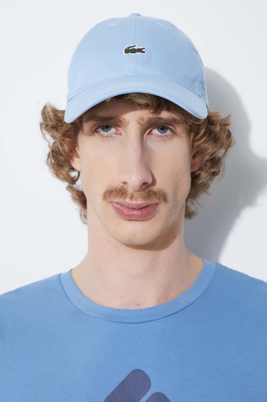 Lacoste czapka z daszkiem bawełniana kolor niebieski z aplikacją
