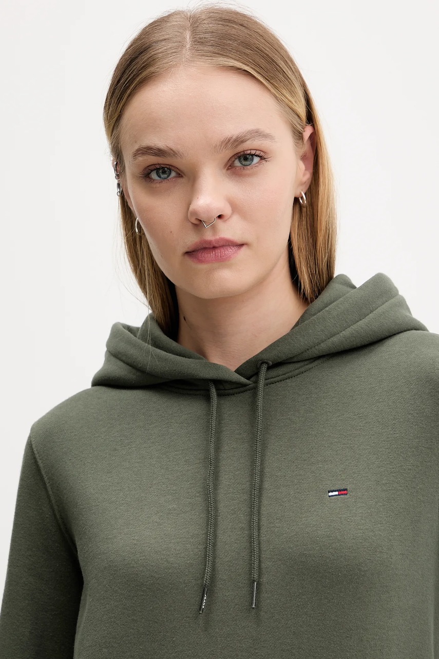 Tommy Jeans bluza damska kolor zielony z kapturem gładka DW0DW19958
