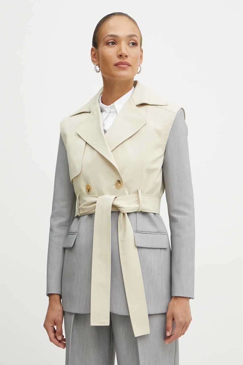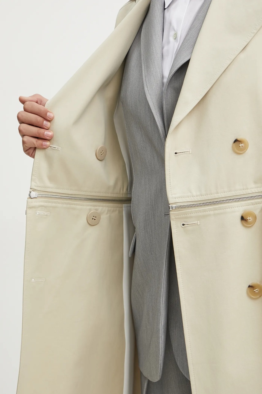 Patrizia Pepe trencz bawełniany kolor beżowy przejściowy dwurzędowy 8O0162 AK55