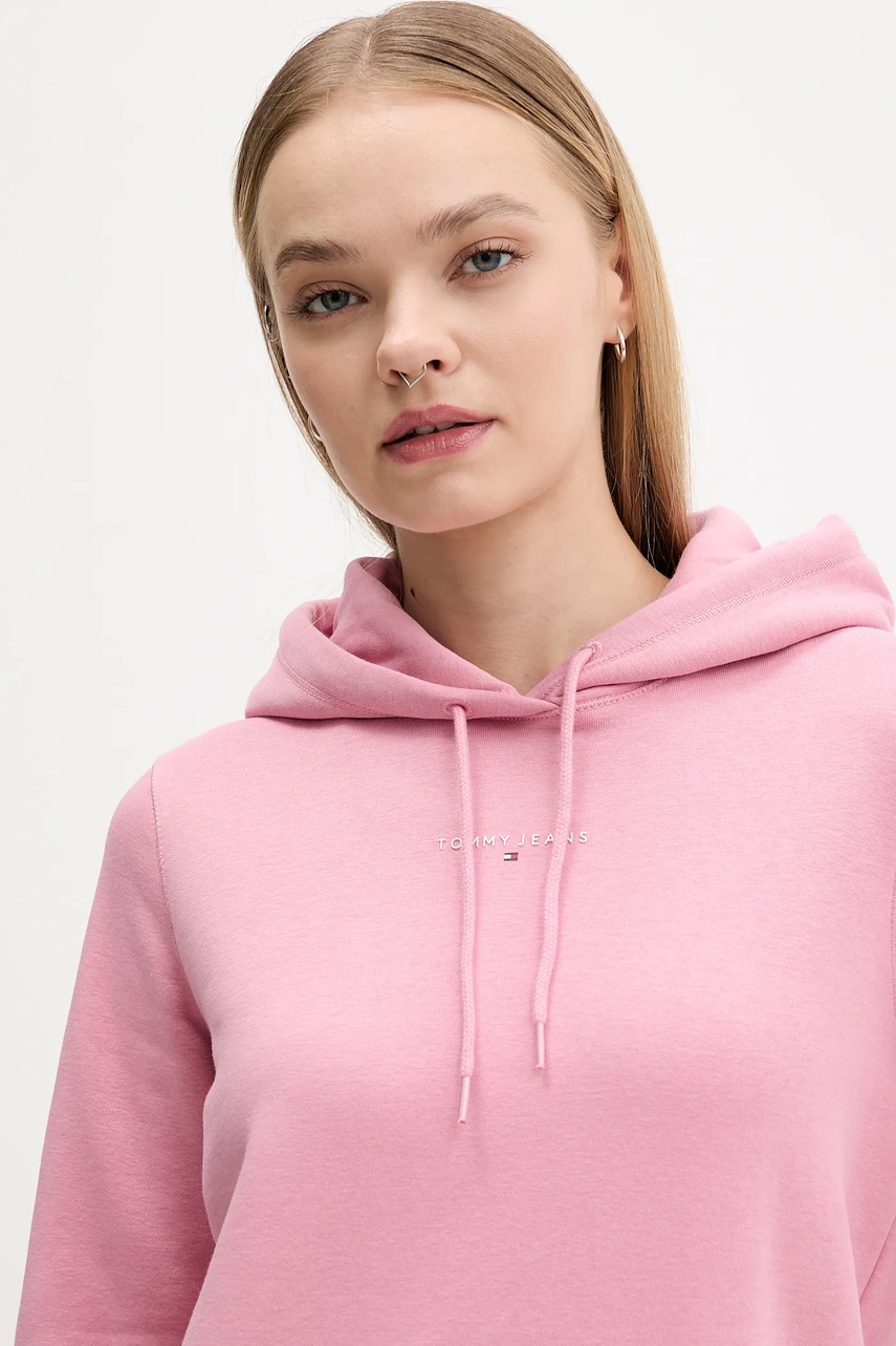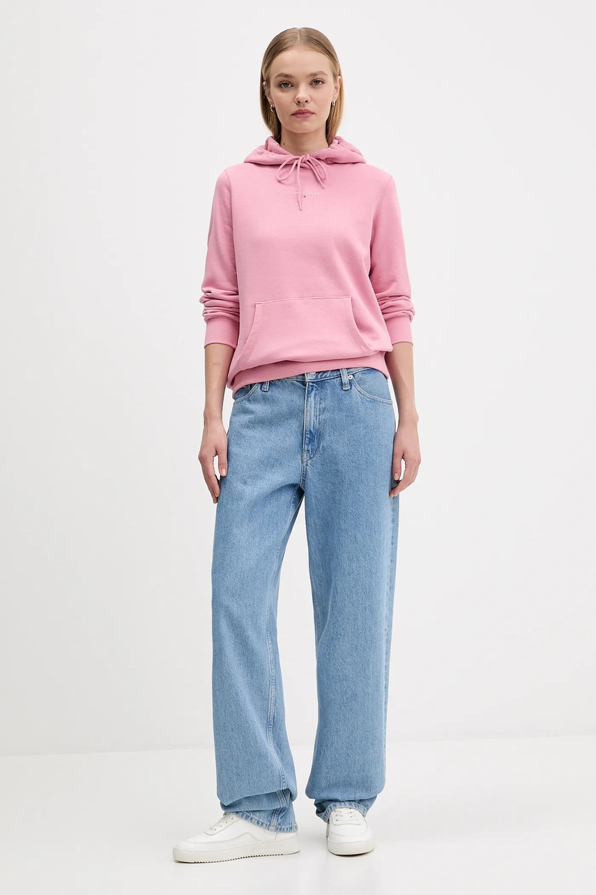 Tommy Jeans bluza damska kolor różowy z kapturem z nadrukiem DW0DW21963