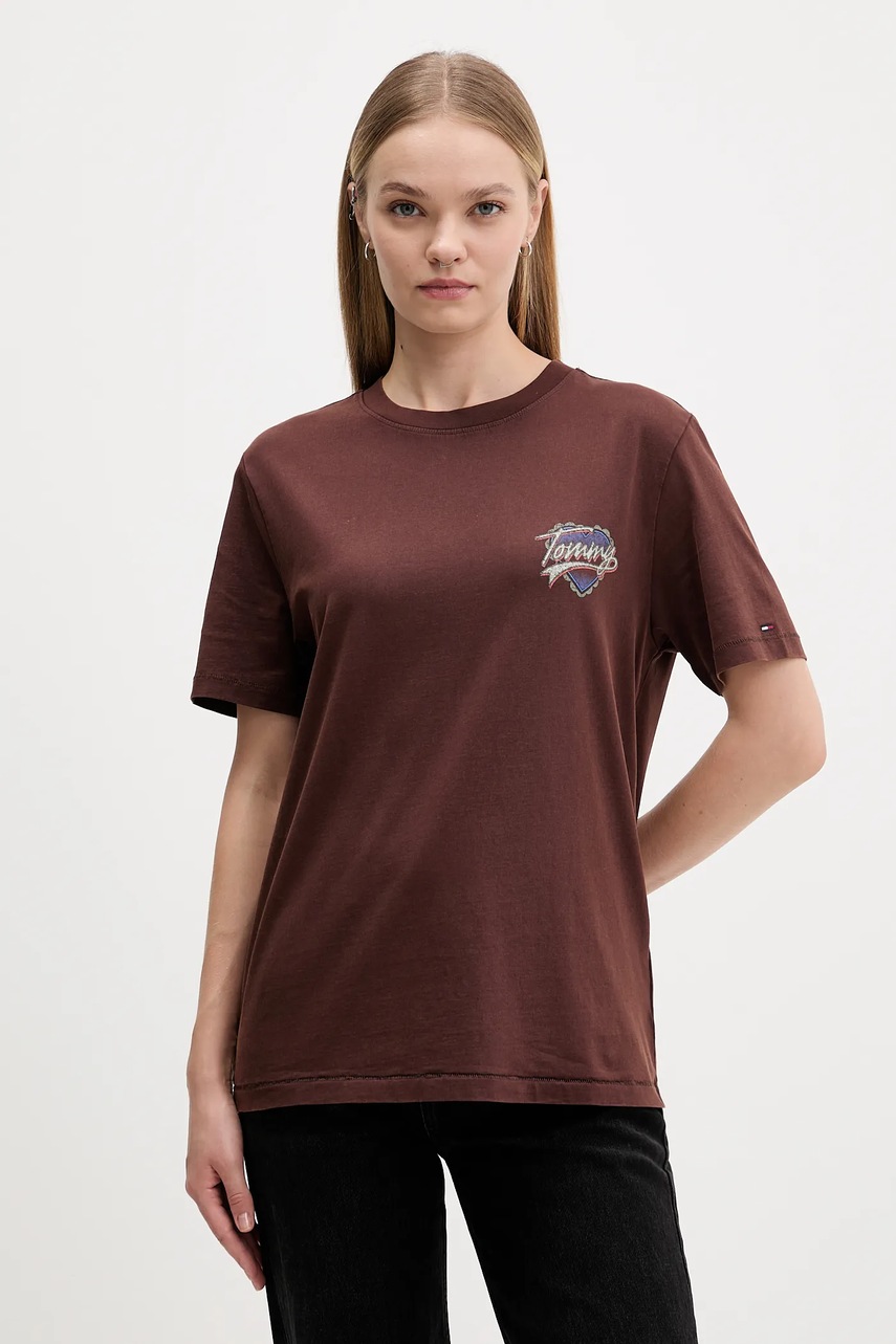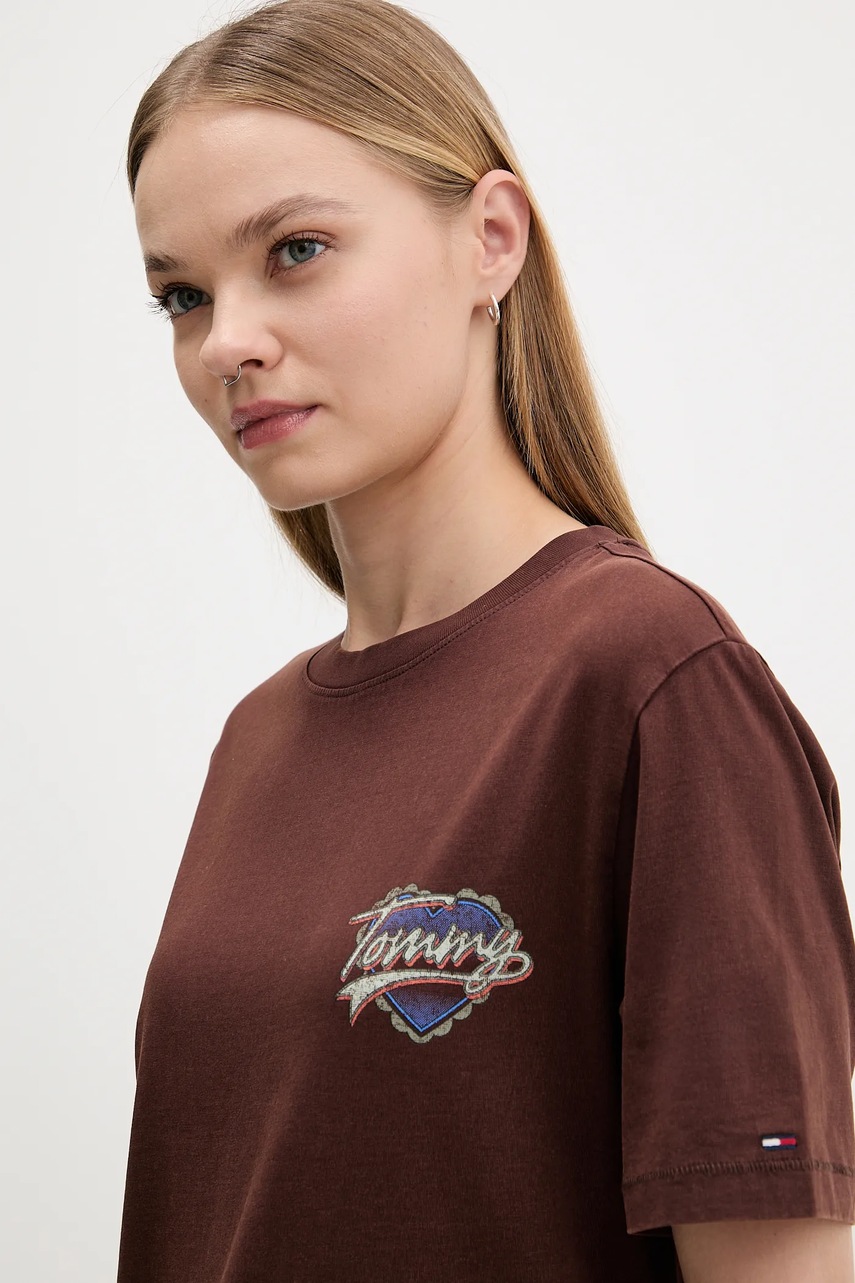 Tommy Jeans t-shirt bawełniany damski kolor brązowy DW0DW21524