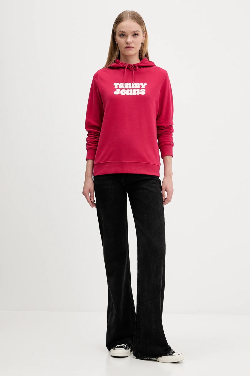 Tommy Jeans bluza bawełniana damska kolor różowy z kapturem z nadrukiem DW0DW21962