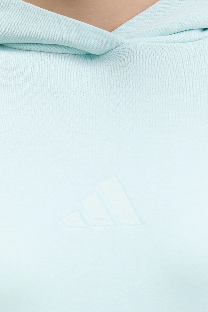 adidas bluza bawełniana All Szn French Terry damska kolor turkusowy z kapturem gładka JV7347