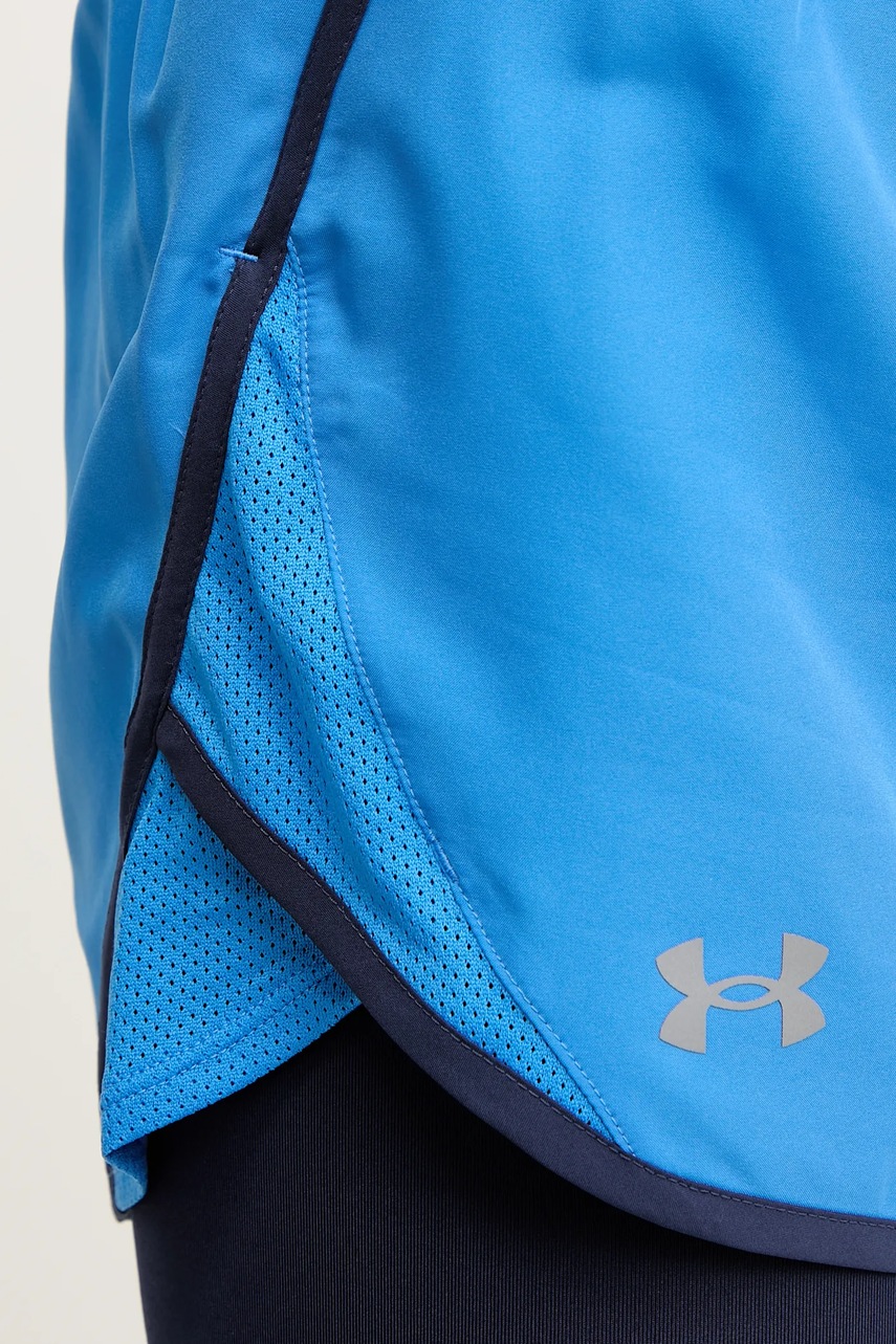 Under Armour szorty do biegania Fly By kolor niebieski gładkie high waist