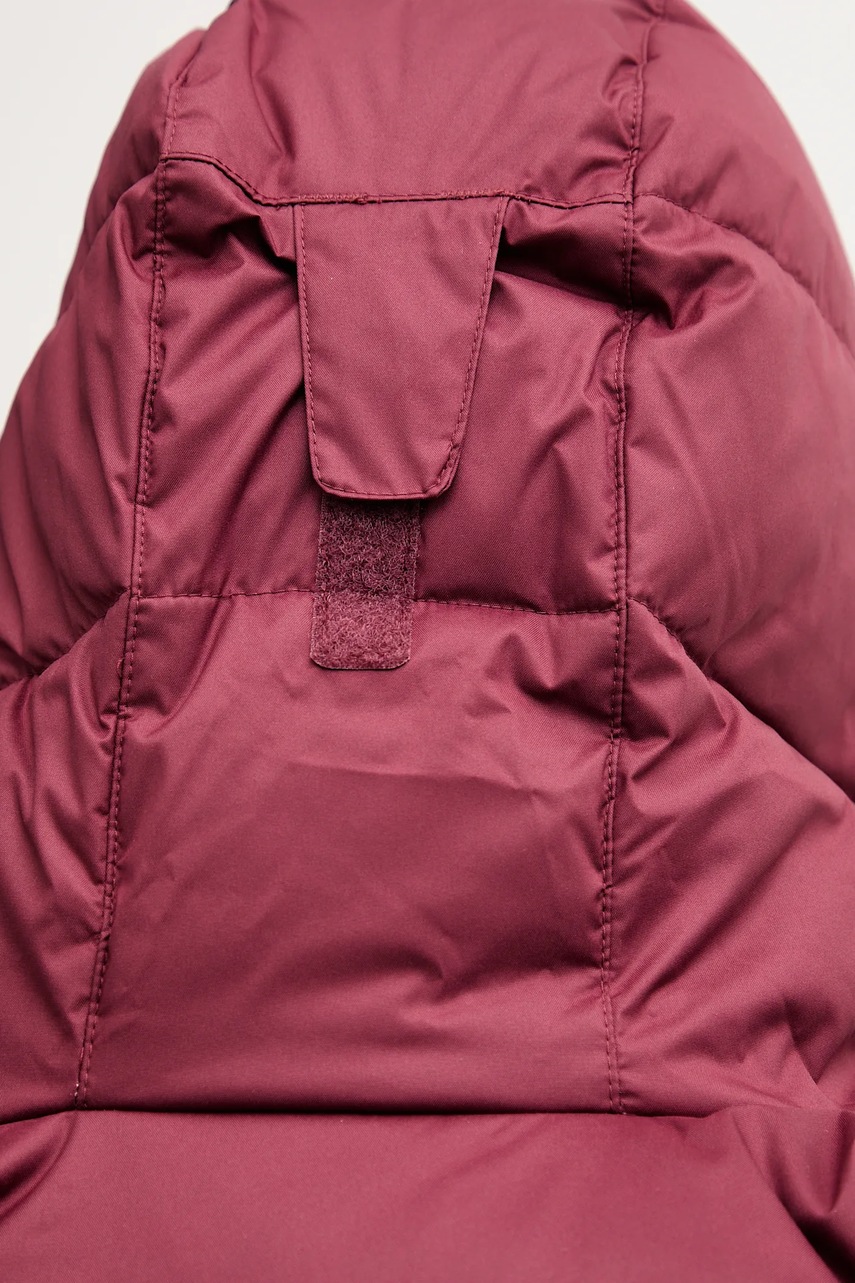 - Mocno zabudowany, podwyższony kołnierz z osłoną podbródka i kaptur z regulacją za pomocą troczków, zapewniają ochronę przed zimnem, wiatrem i opadami śniegu lub deszczu.