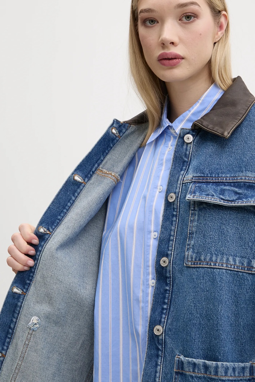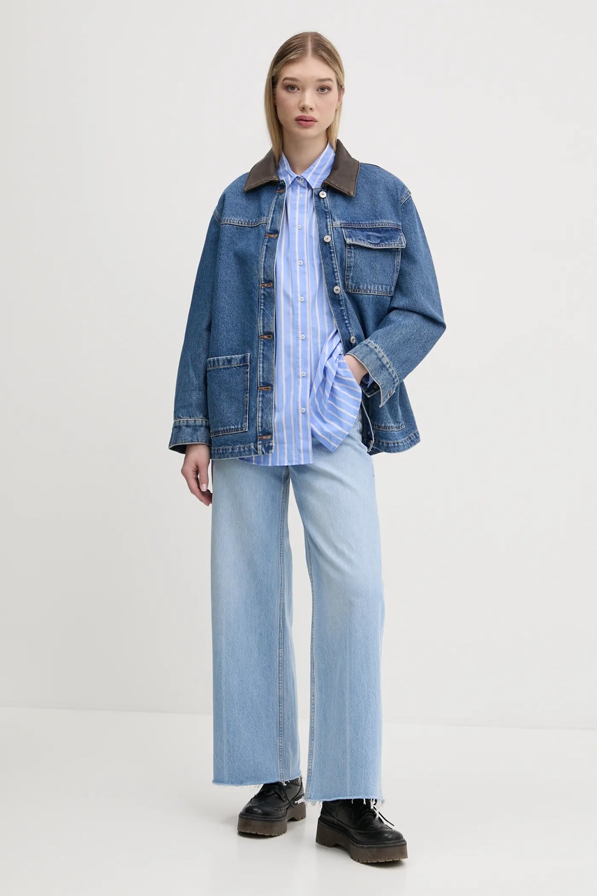 Abercrombie & Fitch kurtka jeansowa damski kolor niebieski przejściowa KI144-5063