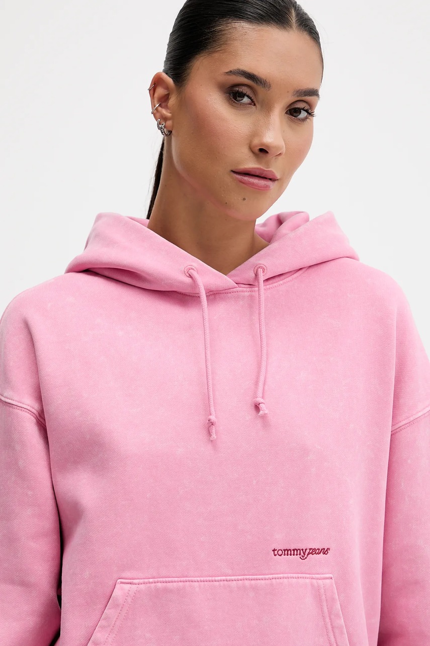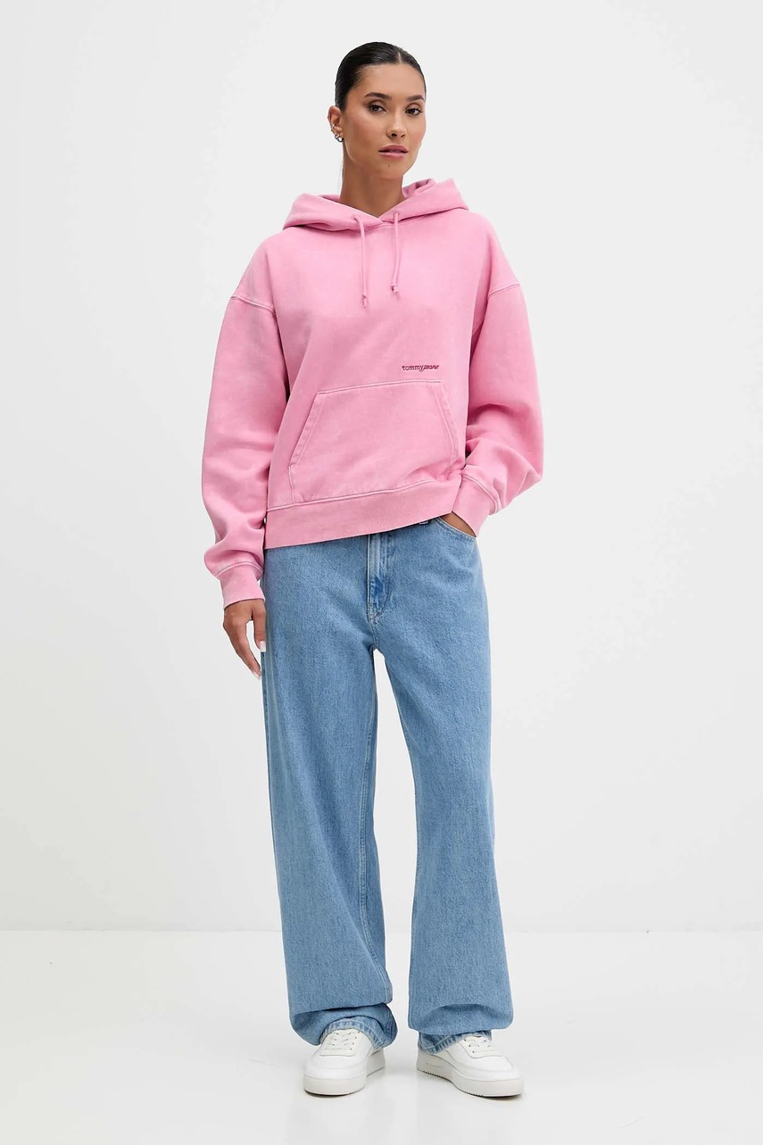 Tommy Jeans bluza damska kolor różowy z kapturem gładka DW0DW21609
