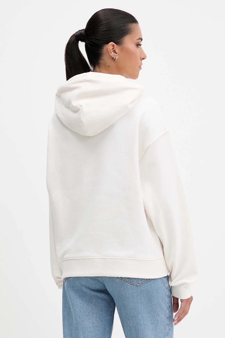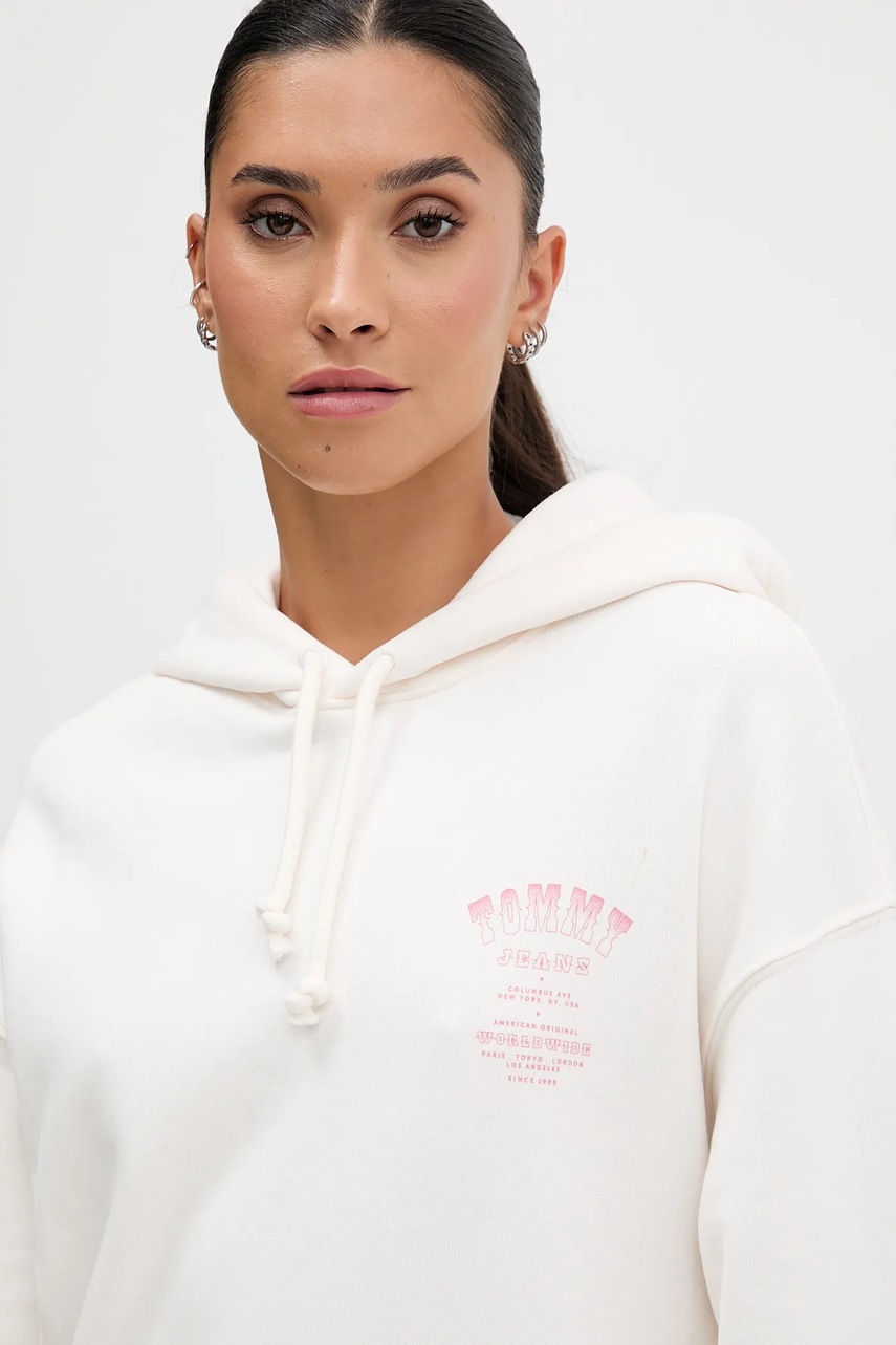 Tommy Jeans bluza bawełniana damska kolor beżowy z kapturem z nadrukiem DW0DW21785