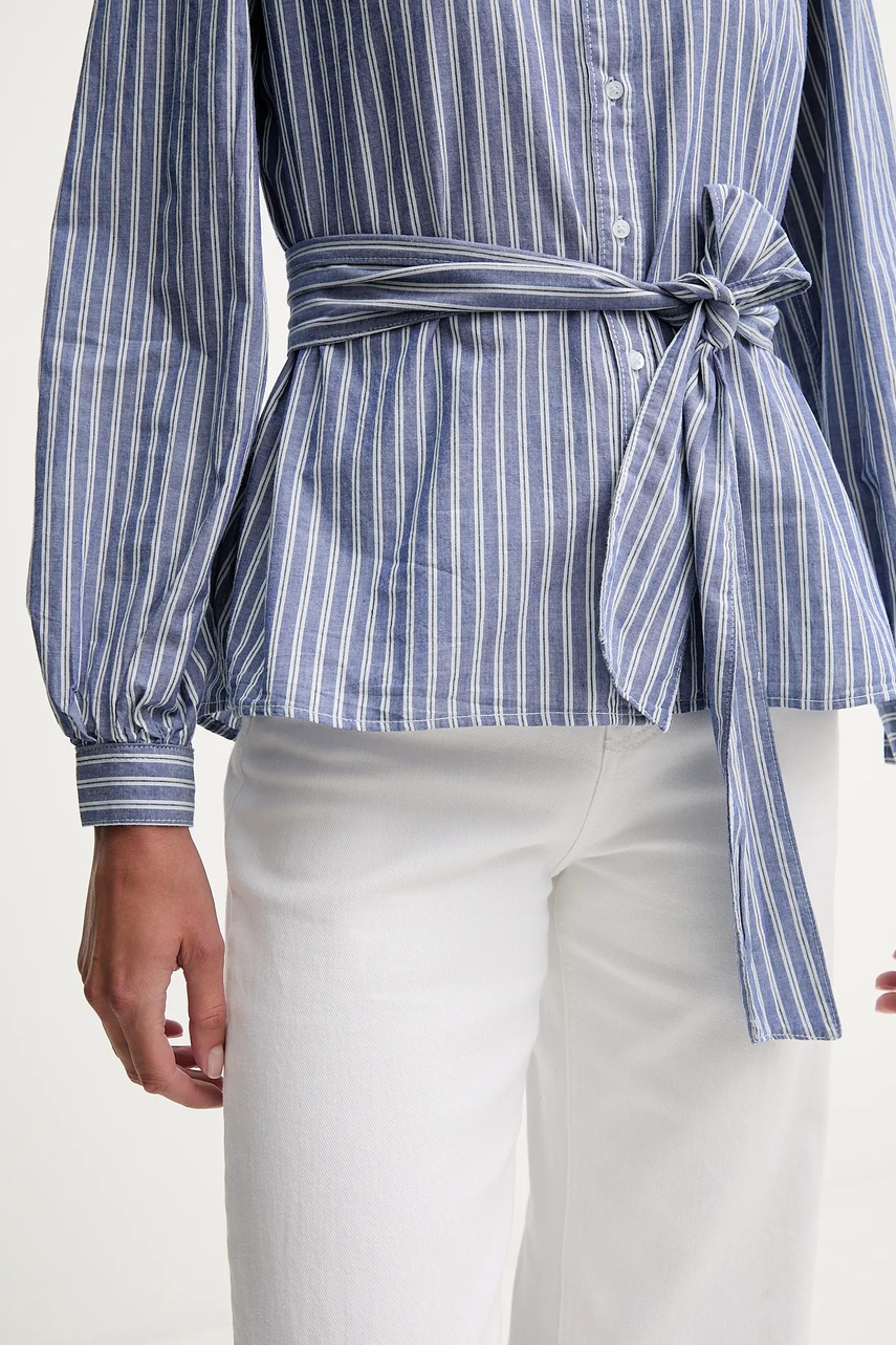 Pepe Jeans koszula bawełniana damska kolor niebieski regular ze stójką PL3051268