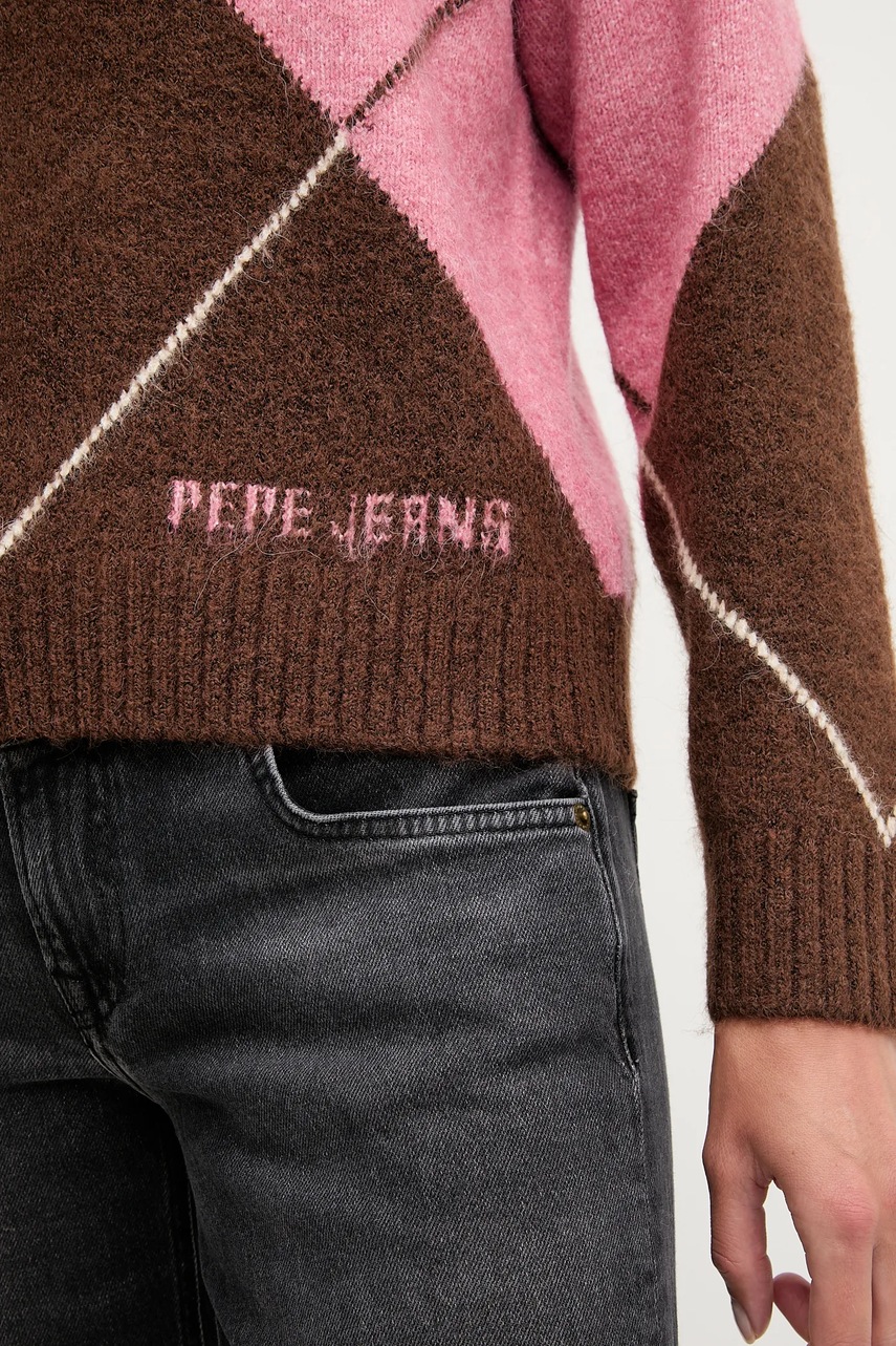 Pepe Jeans sweter z domieszką wełny damski kolor brązowy ciepły PL7000037
