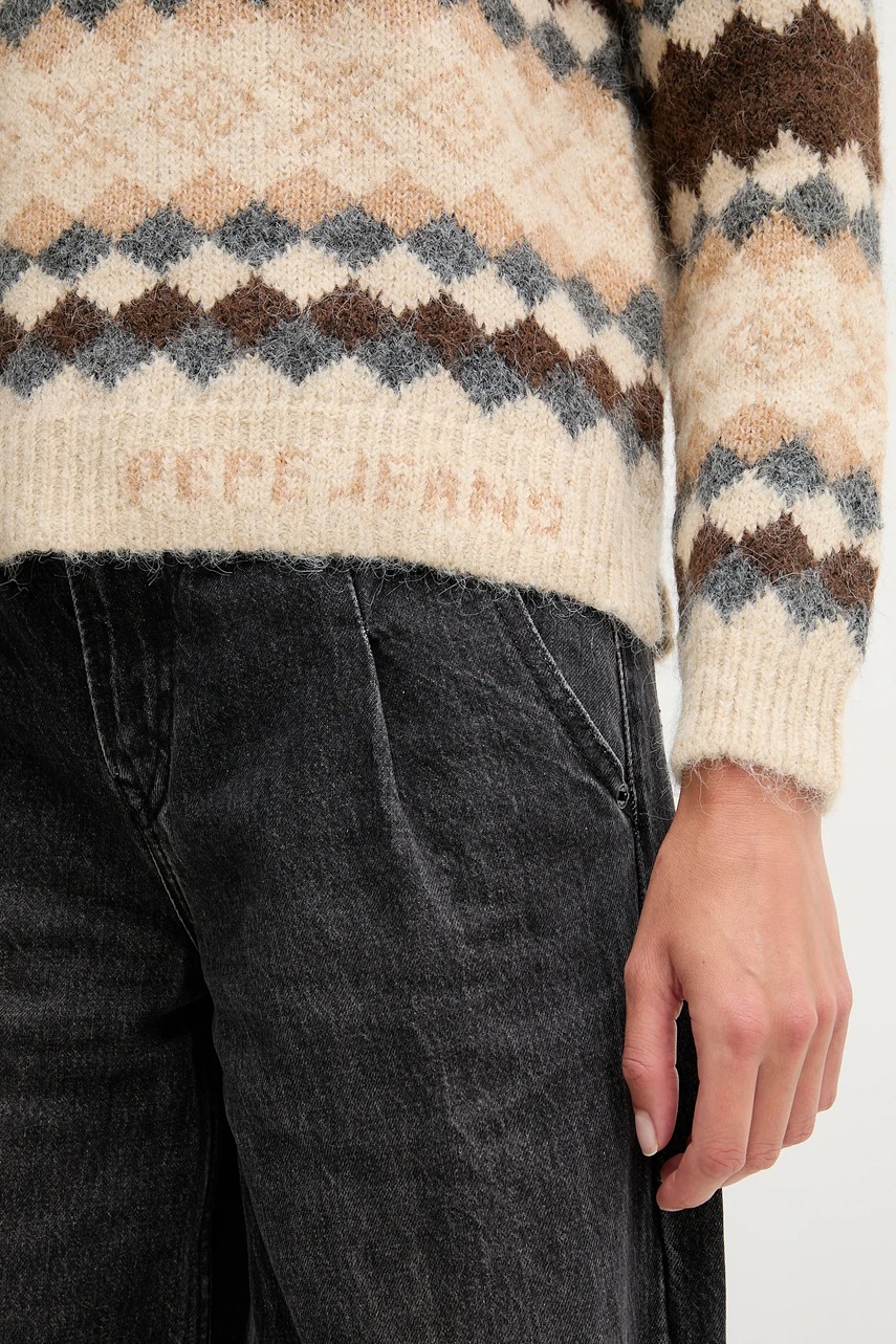 Pepe Jeans sweter z dodatkiem wełny damski kolor brązowy ciepły PL7000039