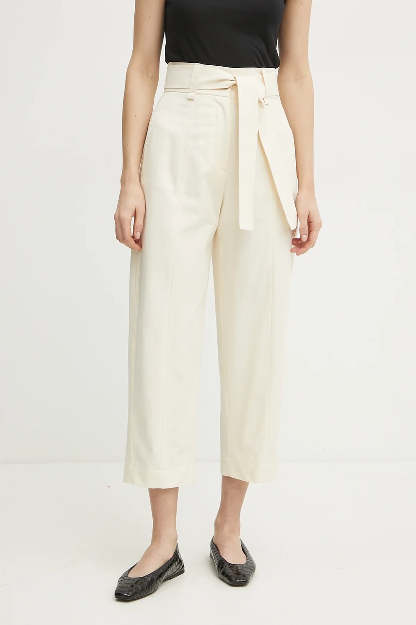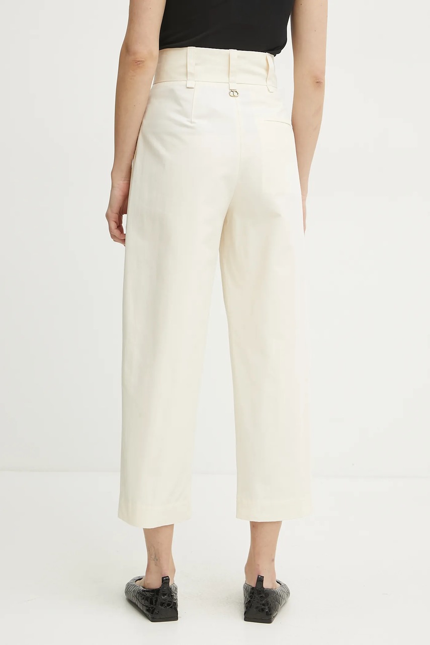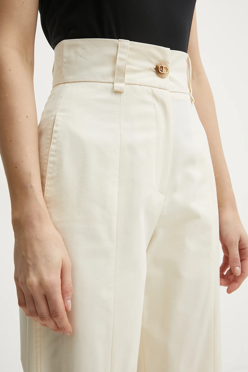 Twinset spodnie damskie kolor beżowy proste high waist 251TP2213