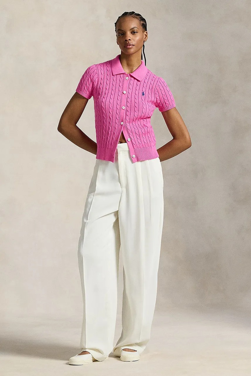 Polo Ralph Lauren koszula bawełniana damska kolor różowy slim z kołnierzykiem klasycznym 211963486