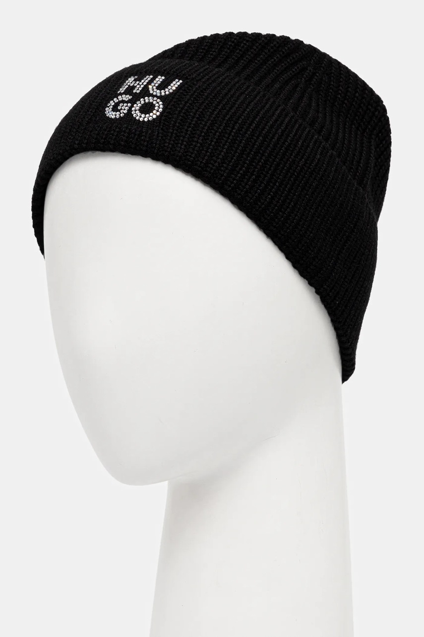 HUGO czapka z dodatkiem wełny kolor czarny 50548732