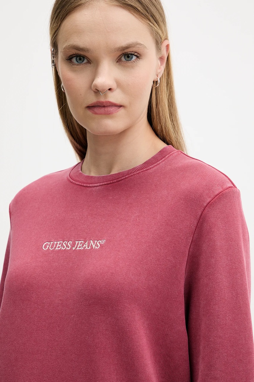 Guess Jeans bluza bawełniana damska kolor różowy gładka W5BQ17 KCPR1