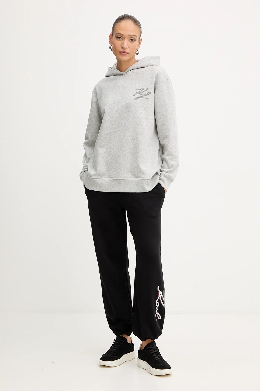 Karl Lagerfeld spodnie dresowe bawełniane damskie kolor szary z aplikacją A4W10141