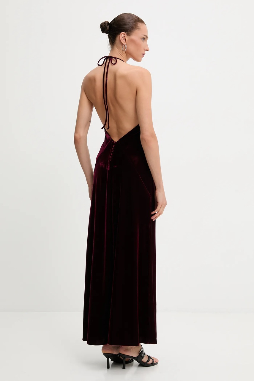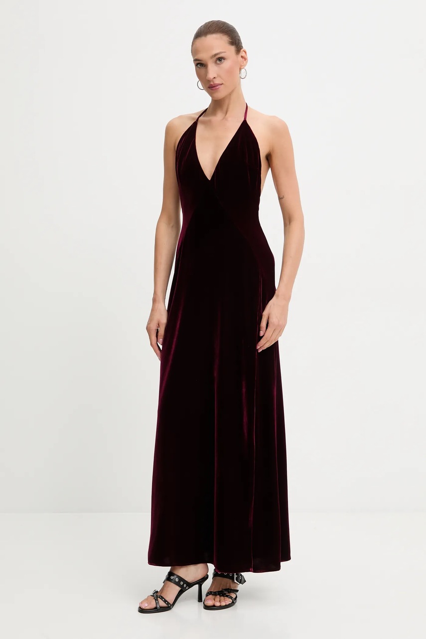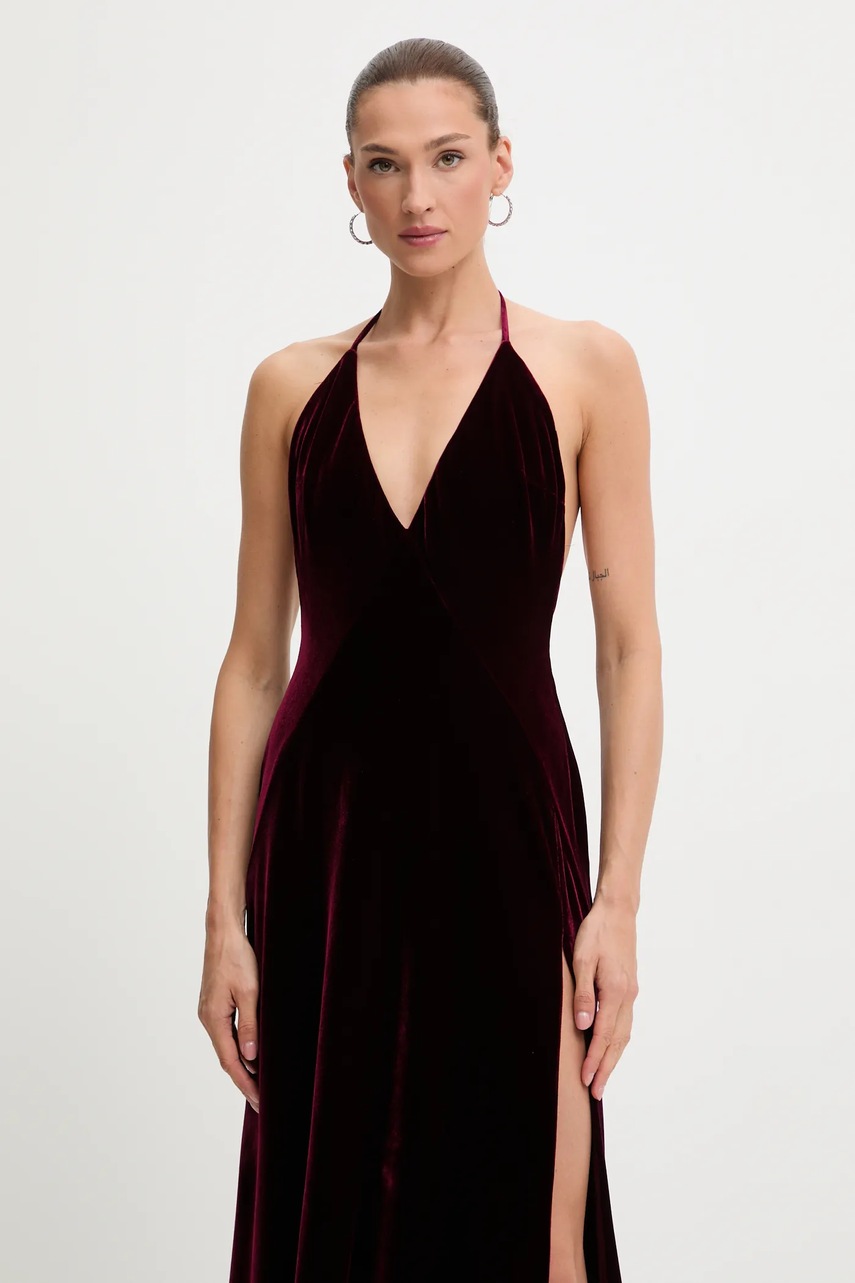 Bardot sukienka welurowa kolor bordowy maxi rozkloszowana 59315DB2